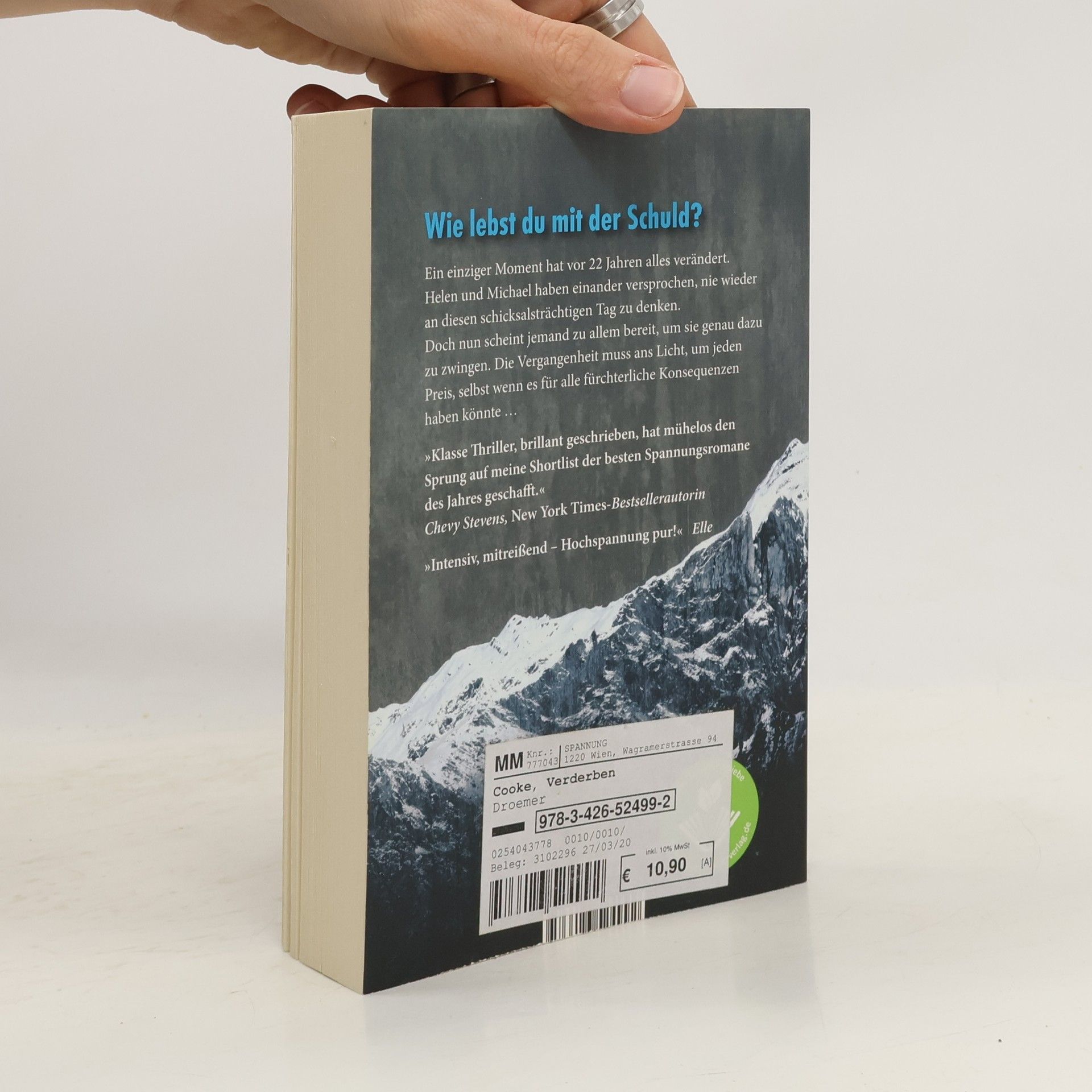 Vier Freunde. Ein Toter. Wie lebst du mit der Schuld? Raffiniert komponierter psychologischer Spannungsroman um ein Berg-Unglück und die Macht von Schuld und Sühne Vier Freunde – drei Männer und eine Frau – brechen im Juni 1995 zu einer anspruchsvollen Klettertour auf den Mont Blanc auf. Bald kommt es zu Reibereien und Rivalitäten unter den Männern. Am Ende kehren nur drei der Freunde vom Berg zurück. 20 Jahre später ist Helen mit ihrem Mann Michael und den Kindern auf dem Heimweg aus dem Urlaub, als ihr Auto von einem weißen Van gerammt wird. Helen erwacht im Krankenhaus, Michael und die Kinder sind schwer verletzt. Doch das ist nicht der größte Schock für Helen: Die Polizei eröffnet ihr, dass ihr Mann den Fahrer des Vans für den Unfall bezahlt haben soll. Kurz darauf flüchtet Michael aus dem Krankenhaus und Helen ahnt, dass die Vergangenheit sie nun endgültig eingeholt hat …