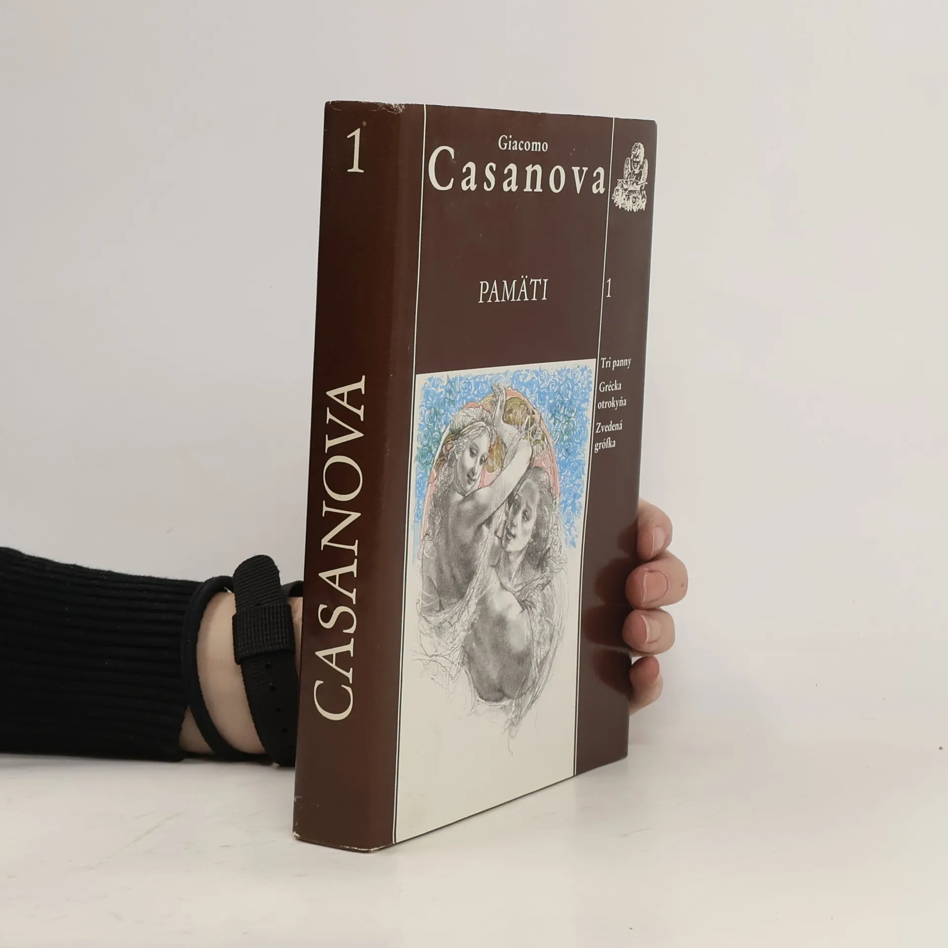 Pamäte Giacoma Casanovu, prvý zväzok. Obsahuje tri časti: Tri panny; Grécka otrokyňa; Zvedená grófka V troch dieloch prvého zväzku Pamätí, kteoré slovenským čitatelom předkládáme ako reedíciu, nás auto oboznamuje s prvými krokmi v svojom živote, s detsvom, štúdiom, s radosťami a ťažkosťami v cirkevnej a vojenske službe. Jadrom celého rozprávania je však citovový, či skor lúbostný život, najrozličnejšie dobrodužstvá s mladými dievčatami i so skúsenými ženami: Casanova svoje erotické zážitky nijako necenzuruje a neuhládza, je dosledný vo svoje zásade nielen dosiahnuť čo najväčšie rozkoše, ale o nich aj otvorene písať. Pokial ide o ženy, neraz vela riskuje a vydáva sa napospas všetkým nebezpečnstvám.
