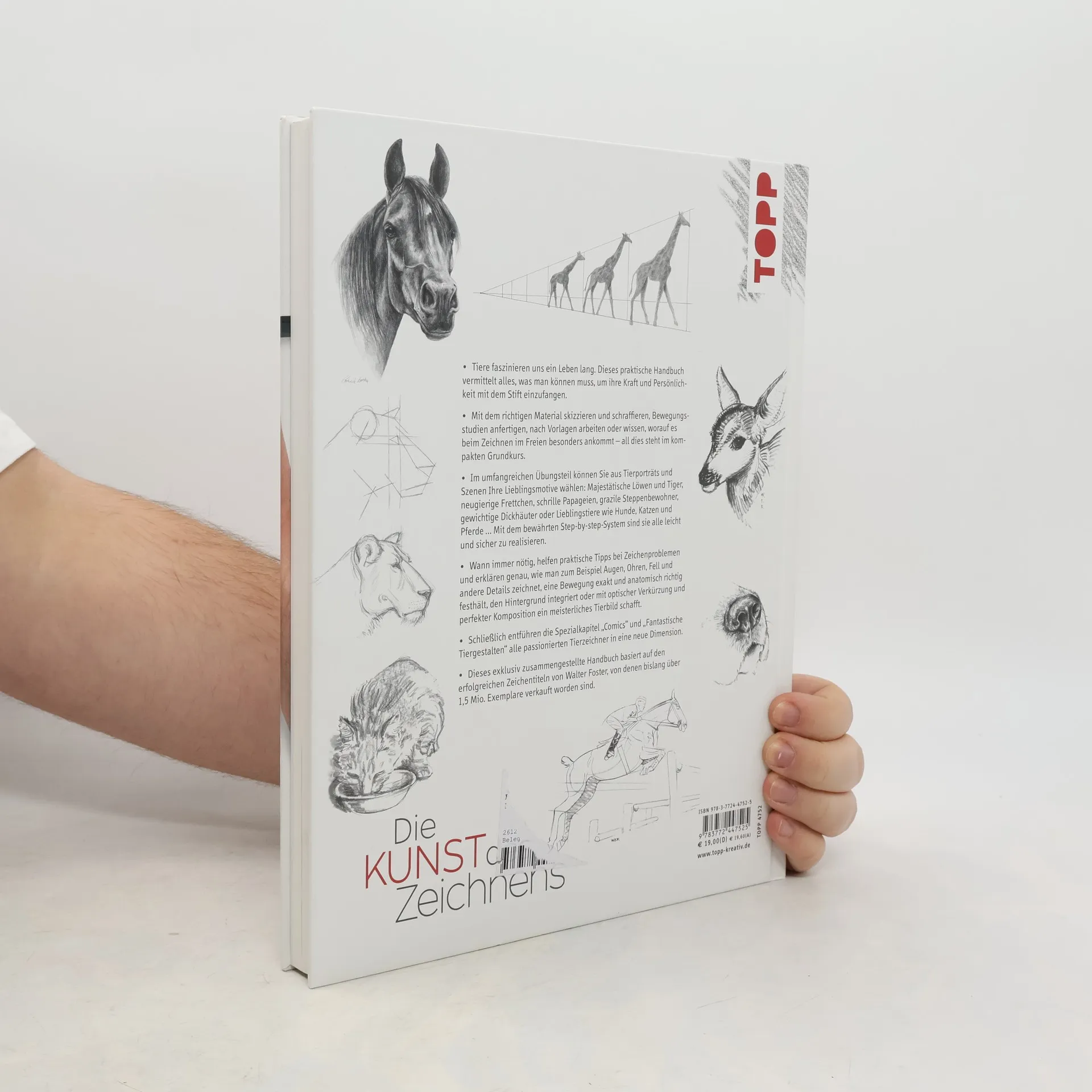 Die Kunst des Zeichnens - Die Erfolgreihe des Zeichnens! Praxisnah, umfassend, leicht verständlich und gut erklärt mit speziellen Hinweisen zum Skizzieren. Die unzähligen Arten und Gattungen von Tieren, die es auf der ganzen Welt gibt, machen den großen Reiz des Tierezeichnens aus. Ob süße Katzen, majestätische Elefanten, Hunde, Wölfe oder Pandabären: mit ein wenig Übung entstehen faszinierende Tierstudien auf Papier. Diese umfassende Zeichenschule zeigt auf 240 Seiten voller Grundlagenwissen , Anleitungen und Tipps, wie man Tiere lebensecht umsetzt . Basis dieser exklusiven Zusammenstellung sind die erfolgreichen Zeichentitel von Walter Foster (USA), von denen bislang über 1,5 Mio. Exemplare verkauft worden sind!