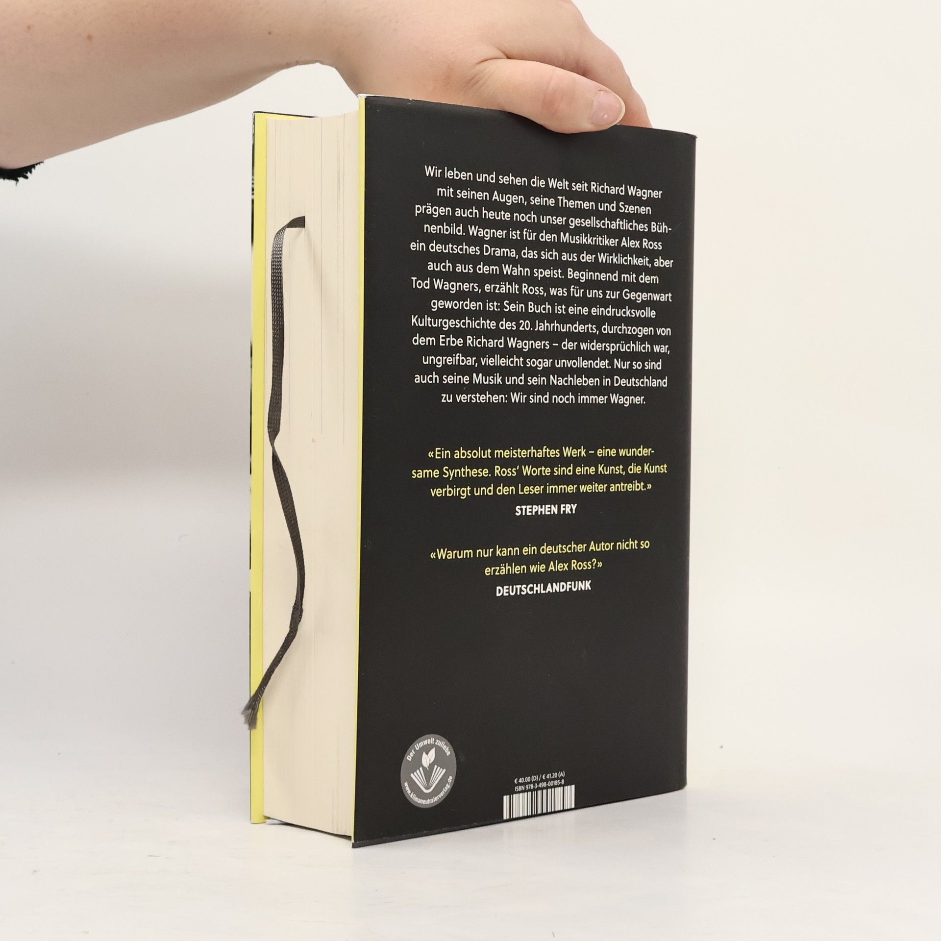 Ein Standardwerk über den großen Komponisten - von einem der angesehensten Musikkritiker der USA. Beginnend mit dem Tod Wagners erzählt Alex Ross, was für uns zur Gegenwart geworden ist: Wir leben und sehen die Welt seit Wagner mit seinen Augen, seine Themen und Szenen prägen auch heute noch unser gesellschaftliches Bühnenbild. Wagner ist für Ross ein deutsches Drama, das sich aus der Wirklichkeit, aber auch aus dem Wahn speist. Sein Buch ist eine eindrucksvolle Kulturgeschichte des 20. Jahrhunderts, durchzogen von dem Erbe Richard Wagners - der widersprüchlich war, ungreifbar, vielleicht sogar unvollendet. Nur so ist auch seine Musik und sein Nachleben in Deutschland zu verstehen: Wir sind noch immer Wagner.