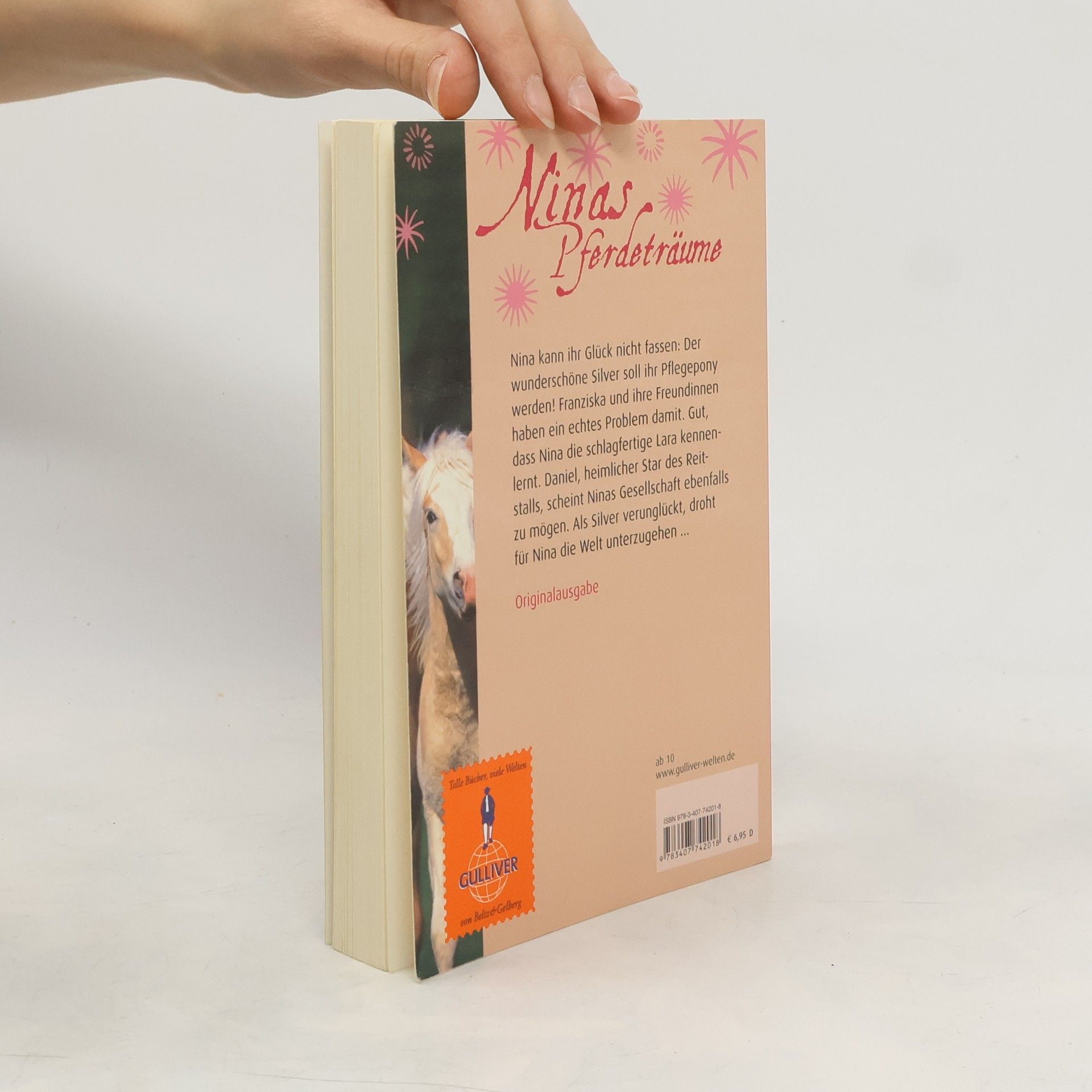 Ninas Pferdeträume - die Pferdeserie bei Gulliver Ohne eigenes Pferd geht gar nichts, findet Nina, die sich trotz Pflegepony Silver schwer tut im neuen Reitstall. Ständig wird sie von Franziska und deren Freundinnen angezickt. Gut, dass sie die schlagfertige Lara kennen lernt! Und Daniel, den Star des Reitstalls. Von ihnen bekommt Nina Unterstützung, als Silver bei einem mysteriösen Unfall verletzt wird. Nie wieder wird Nina reiten, das schwört sie. Doch dann kommt ein fremdes Pferd ins Spiel – Langus, eine wunderschöne Schimmelstute! Ein Roman wie aus dem Leben gegriffen, in dem es um Mädchen und Intrigen, Pferde und Turniere und natürlich auch um Jungs geht.