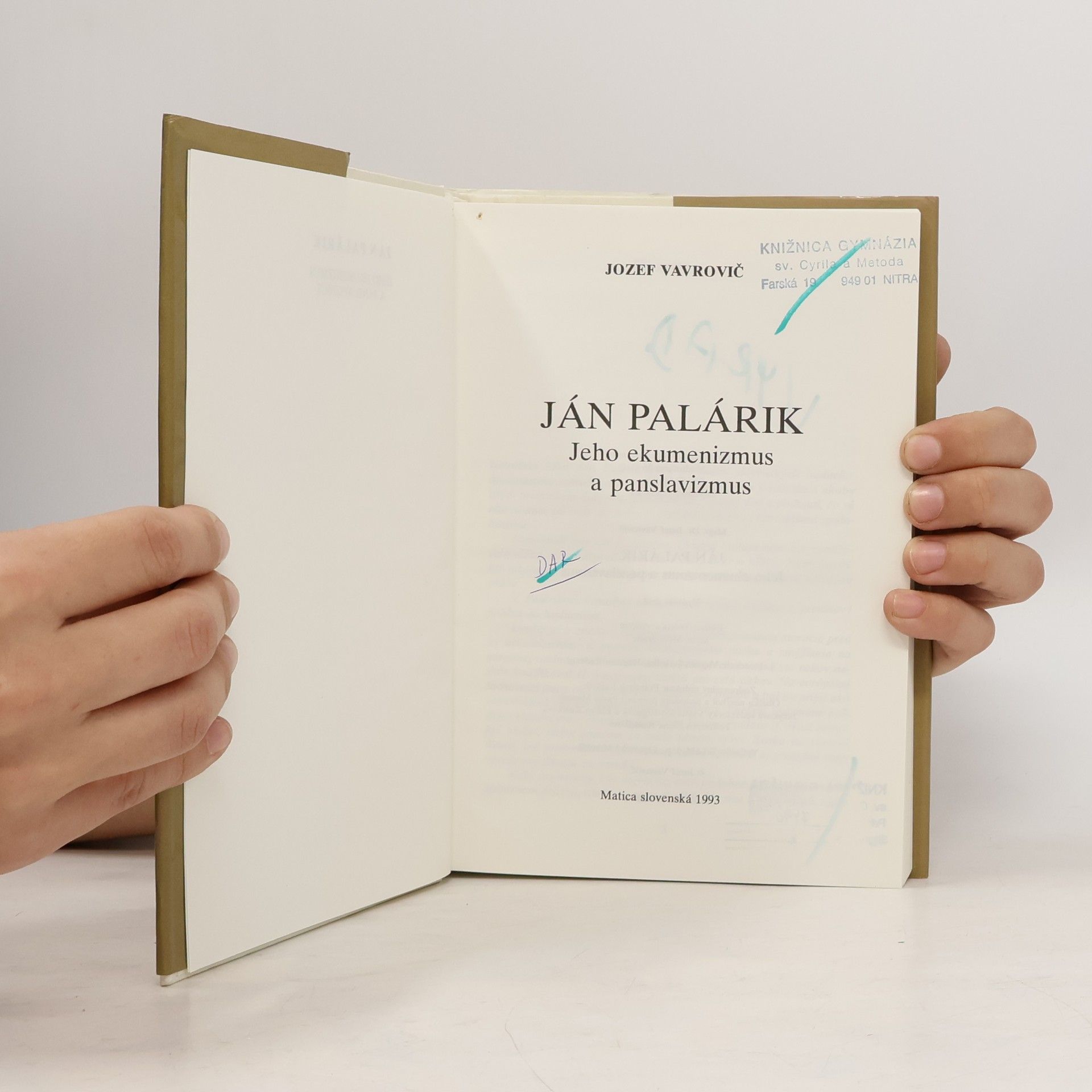 Ján Palárik. Jeho ekumenizmus a panslavizmus, Jozef Vavrovič