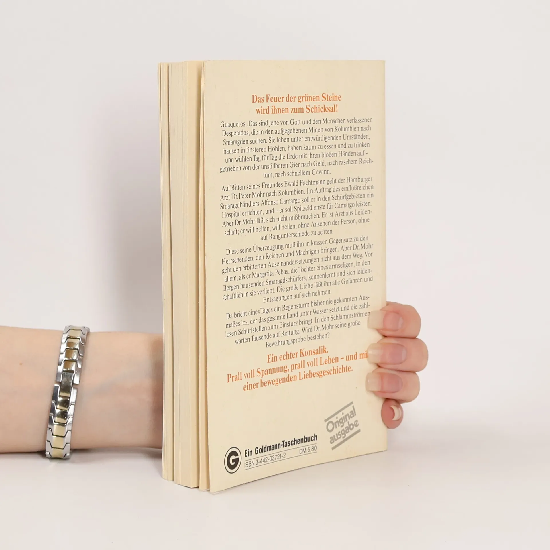 Der junge Arzt Peter Mohr führt ein beneidenswertes Leben: Er ist beruflich erfolgreich und hat es bei Frauen leicht. Doch als er einen Brief eines Studienfreundes aus Kolumbien erhält, der ihm Abenteuer und einen Neuanfang verspricht, ändert er alles. Peter verlässt sein bisheriges Leben und zieht in die Kordilleren, um als Urwaldarzt ein Krankenhaus für Smaragdschürfer zu leiten. Unter extremen Bedingungen trifft er die Liebe seines Lebens, Margarita, und ist bereit, alle Strapazen auf sich zu nehmen, um mit ihr zusammen zu sein. Doch eine Naturkatastrophe bedroht ihr Glück und bringt alles ins Wanken. Im Nachwort reflektiert die Herausgeberin Dagmar Konsalik über den Schaffensprozess ihres Vaters, der seine Romane erst begann, wenn er umfassend recherchiert hatte. Seine Reisen ermöglichten ihm, die Schauplätze seiner Geschichten zu erkunden, und er freute sich, seine Bücher in den entlegensten Orten der Welt zu finden. Abenteuer- und Auswanderergeschichten faszinieren ihn, insbesondere die von Menschen, die ihr gewohntes Leben hinter sich lassen, um neu anzufangen. Diese Erzählungen, oft aus Idealismus, spiegeln sich in den Figuren seiner Romane wider, wie dem erfolgreichen Arzt, der in die Kordilleren zieht, um in einer Region zu arbeiten, die für ihre Smaragdproduktion bekannt ist und von Konflikten geprägt ist.