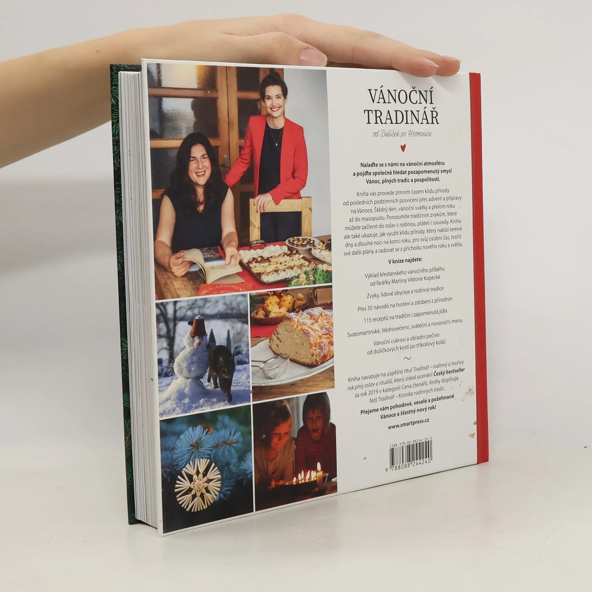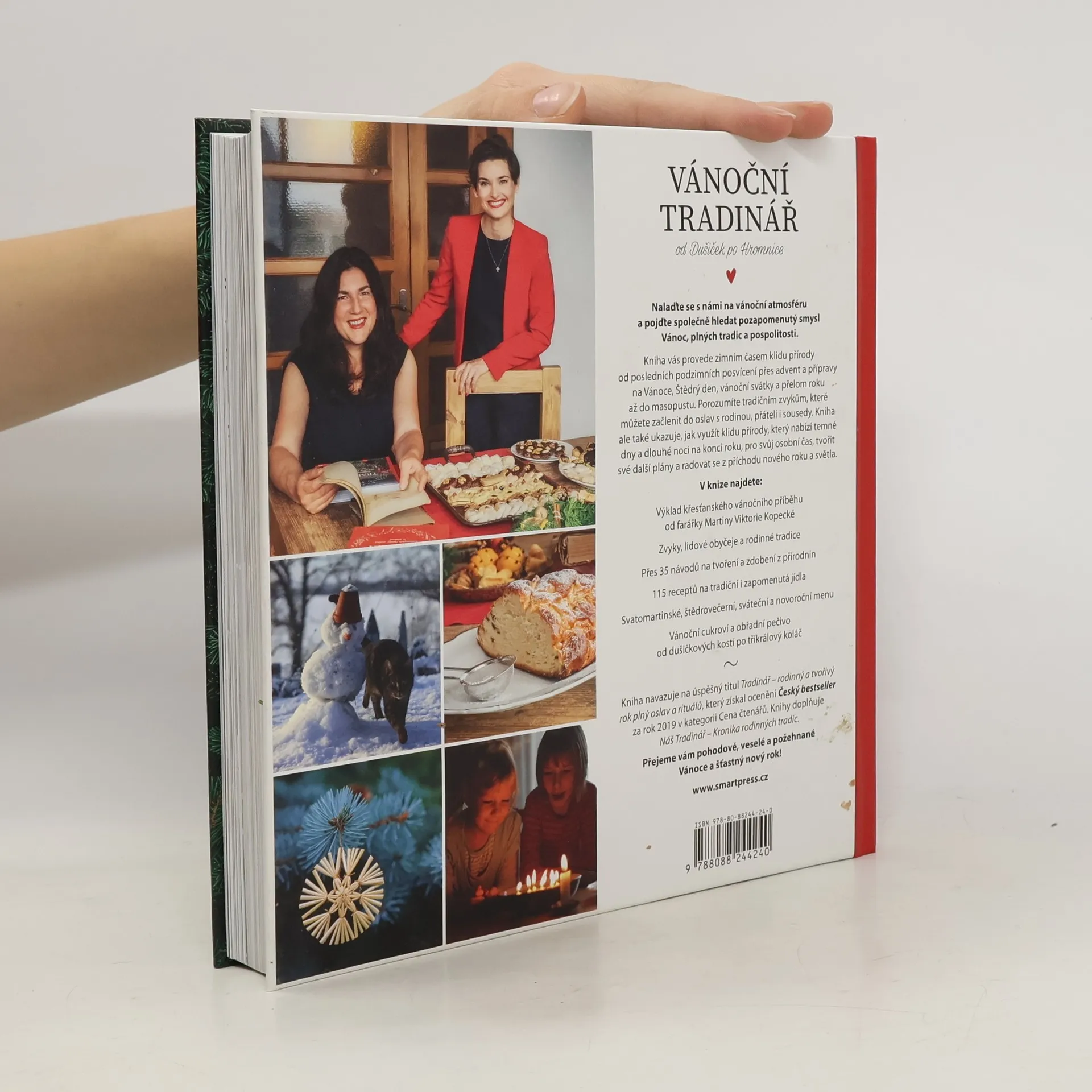 Nalaďte se s námi na vánoční atmosféru a pojďte společně hledat pozapomenutý smysl Vánoc, plných tradic a pospolitosti. Kniha vás provede zimním časem klidu přírody od posledních podzimních posvícení přes advent a přípravy na Vánoce, Štědrý den, vánoční svátky a přelom roku až do masopustu. Porozumíte tradičním zvykům, které můžete začlenit do oslav s rodinou, přáteli i sousedy. Kniha ale také ukazuje, jak využít klidu přírody, který nabízí temné dny a dlouhé noci na konci roku, pro svůj osobní čas, tvořit své další plány a radovat se z příchodu nového roku a světla. V knize najdete: výklad křesťanského vánočního příběhu od farářky Martiny Viktorie Kopecké zvyky, lidové obyčeje a rodinné tradice praktické plánovací kapitoly pro tvořitelky Vánoc přes 35 návodů na tvoření a zdobení z přírodnin dárky, které mohou vytvořit děti samy Publikace se na světové soutěži Gourmand Cookbook Awards umístila na 4. místě v kategorii Pohostinnost. 115 receptů na tradiční i zapomenutá jídla svatomartinské, štědrovečerní, sváteční a novoroční menu vánoční cukroví a obřadní pečivo od dušičkových kostí po tříkrálový koláč Kniha volně navazuje na úspěšný titul Tradinář – rodinný a tvořivý rok plný oslav a rituálů, který získal ocenění Český bestseller za rok 2019 v kategorii Cena čtenářů. Knihy doplňuje i kniha Náš Tradinář – Kronika rodinných tradic a plátěná taška s logem Tradináře.