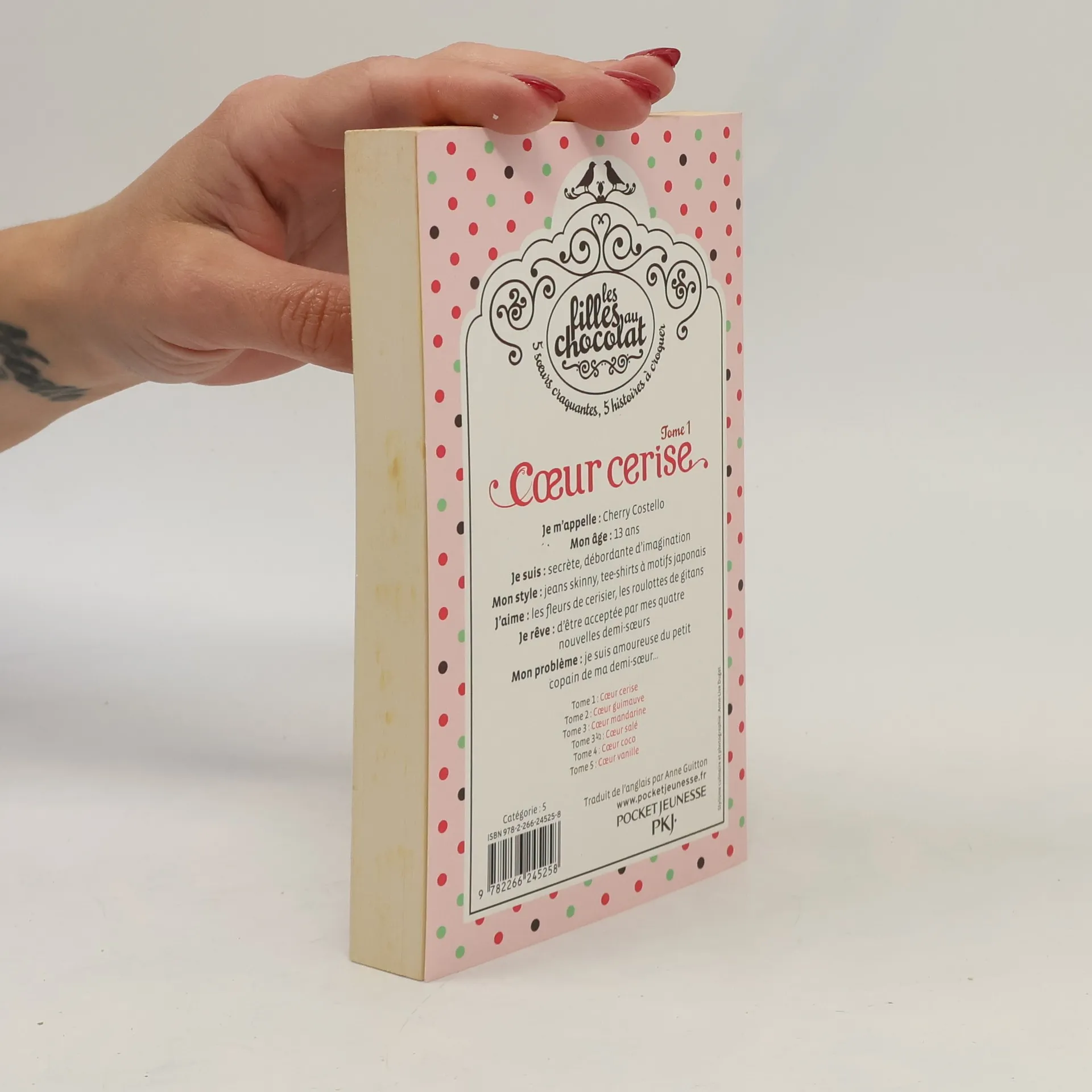 Je m'appelle : Cherry Costello Mon âge : 13 ans Je suis : secrète, débordante d'imagination Mon style : jeans skinny, tee-shirts à motifs japonais J'aime : les fleurs de cerisier, les roulottes de gitans Je rêve : d'être acceptée par mes qu