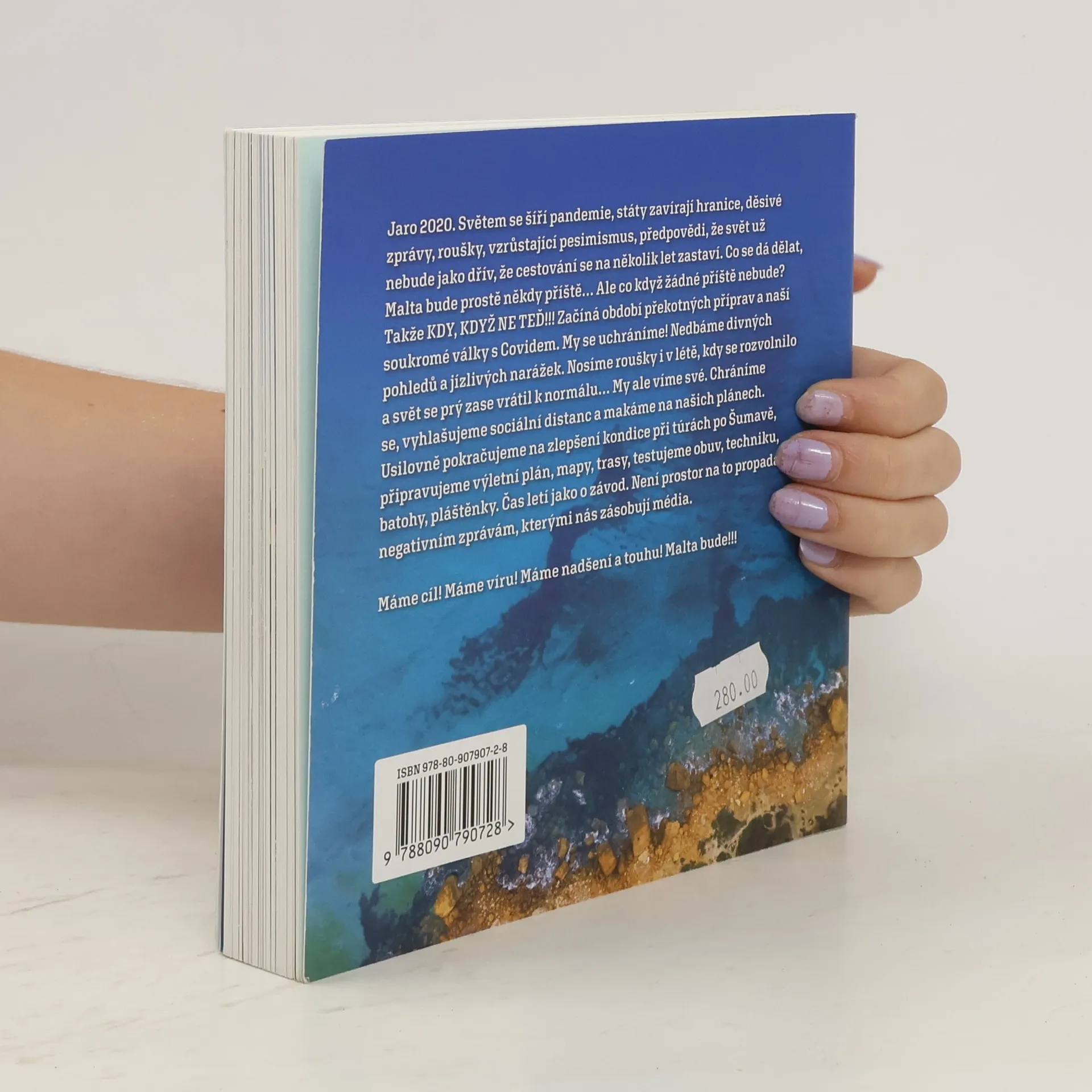 Jaro 2020. Světem se šíří pandemie, státy zavírají hranice, děsivé zprávy, roušky, vzrůstající pesimismus, předpovědi, že svět už nebude jako dřív, že cestování se na několik let zastaví. Co se dá dělat, Malta bude prostě někdy příště... Ale co když žádné příště nebude? Takže KDY, KDYŽ NE TEĎ!!! Začíná období překotných příprav a naší soukromé války s Covidem. My se uchráníme! Nedbáme divných pohledů a jízlivých narážek. Nosíme roušky i v létě, kdy se rozvolnilo a svět prý se zase vrátil k normálu... My ale víme své. Chráníme se, vyhlašujeme sociální distanc a makáme na našich plánech. Usilovně zlepšujeme naši kondici při tůrách po Šumavě, připravujeme výletní plán, mapy, trasy, testujeme obuv, techniku, batohy, pláštěnky. Čas letí jako o závod. Není prostor na to propadat negativním zprávám, kterými nás zásobují média. Máme cíl! Máme víru! Máme nadšení a touhu! Malta bude!!! A to na celý měsíc říjen...