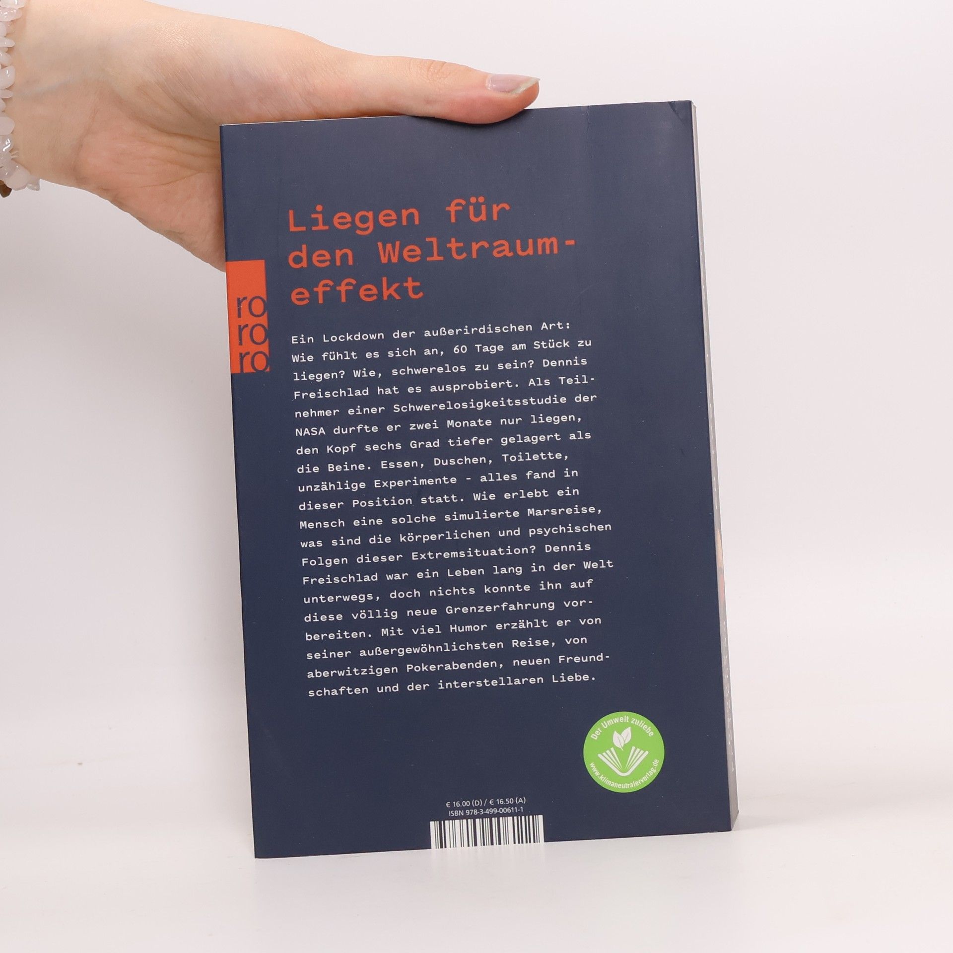 Ein Lockdown der außerirdischen Art: Wie fühlt es sich an, 60 Tage am Stück zu liegen? Wie, schwerelos zu sein? Dennis Freischlad hat es ausprobiert. Als Teilnehmer einer Schwerelosigkeit-Studie der NASA durfte er zwei Monate nur liegen, den Kopf sechs Grad tiefer gelagert als die Beine. Essen, Duschen, Toilette, unzählige Experimente – alles fand in dieser Position statt. Wie erlebt ein Mensch eine solche simulierte Marsreise, was sind die körperlichen und psychischen Folgen dieser Extremsituation? Dennis Freischlad war ein Leben lang in der Welt unterwegs, doch nichts konnte ihn auf diese völlig neue Grenzerfahrung vorbereiten. Mit viel Humor erzählt er von seiner außergewöhnlichsten Reise, von aberwitzigen Pokerabenden, neuen Freundschaften und der interstellaren Liebe.