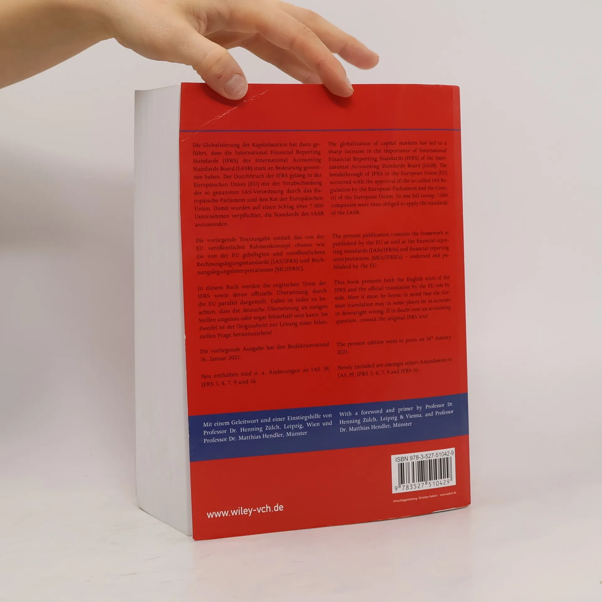 Die International Financial Reporting Standards (IFRS) sind auf Grund einer Verordnung EU-weit von allen börsennotierten Unternehmen verbindlich anzuwenden. In Deutschland besteht für Konzernabschlüsse nicht-kapitalmarktorientierter Konzerne und für spezielle Jahresabschlüsse die Möglichkeit einer freiwilligen Bilanzierung nach IFRS. Diese Textausgabe enthält alle International Financial Reporting Standards (IFRS) bzw. International Accounting Standards (IAS) sowie alle Interpretationen (SICs, IFRICs), die von der Europäischen Union (EU) gebilligt und so für kapitalmarktorientierte Unternehmen verpflichtend anzuwenden sind. Die Standards werden in englischer und deutscher Sprache synoptisch gegenübergestellt. Auf diese Weise wird ein Vergleich mit dem englischen Ursprungstext ermöglicht. Dieser hat besondere Bedeutung, da er in Auslegungsfragen herangezogen werden muss. Die Textausgabe enthält ein Vorwort und eine Einführung von Professor Dr. Henning Zülch, HHL-Leipzig Graduate School of Management, und Prof. Dr. Matthias Hendler, Münster. Die Ausgabe 2021 berücksichtigt alle Änderungen, die von der Europäischen Union bis zum 1. Februar 2021 übernommen wurden.
