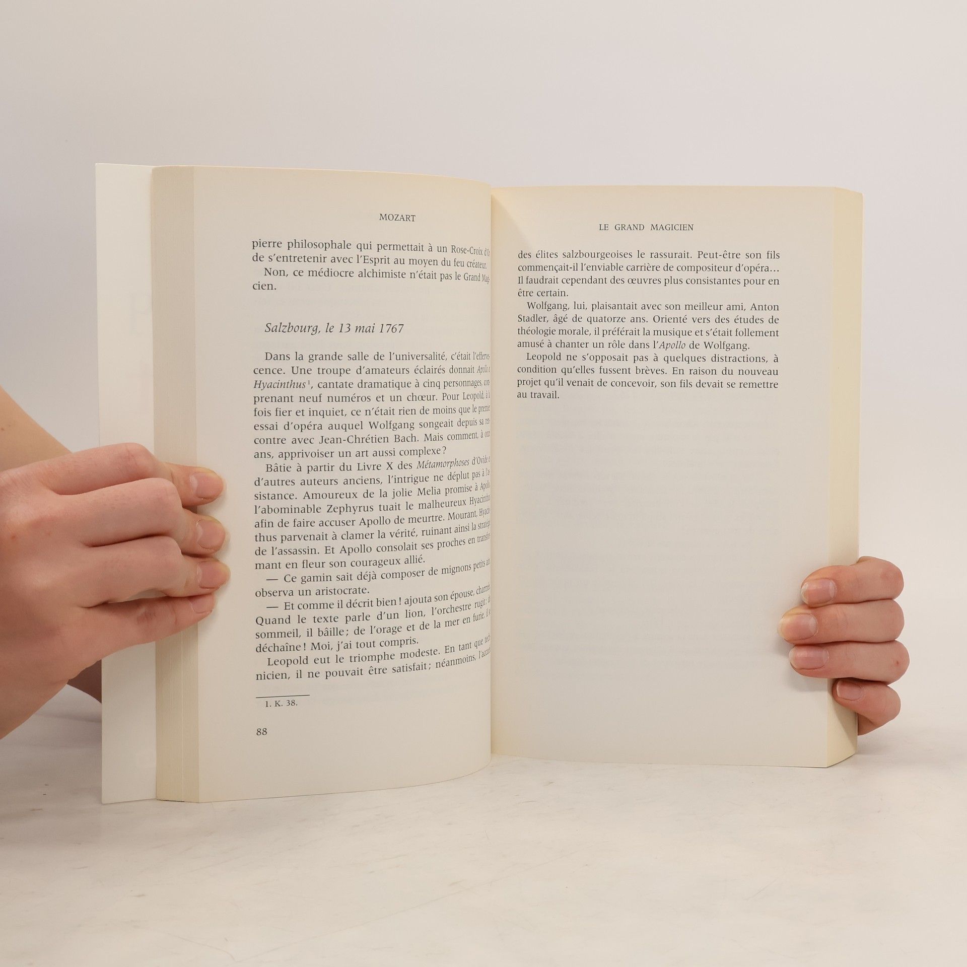 Il n'a que sept ans, il a déjà beaucoup voyagé pour donner des concerts à Prague, Vienne, Francfort... et il a un secret qui le console de tout quand il est trop fatigué, un trésor personnel un royaume imaginaire joliment dessiné sur une carte qui ne le quitte jamais et dont il est le monarque. Il s'appelle Wolfgang Amadeus Mozart, c'est un enfant prodige, il compose pour " chercher les notes qui s'aiment ". C'est alors qu'un homme se présente à lui. Thamos, comte de Thèbes, est venu de Haute-Egypte pour initier le " Grand Magicien " dont l'œuvre évitera à l'humanité de sombrer dans le chaos. Et ce Magicien, il le pressent, est peut-être Mozart. Dès cet instant, l'homme et l'enfant ne se quitteront plus. Mais Thamos parviendra-t-il à sauver Mozart des pièges qui se présentent à lui ? Christian Jacq nous révèle les liens étroits que Mozart entretint avec la Franc-Maçonnerie et nous raconte l'aventure spirituelle et la vie secrète de l'un des plus grands génies de l'Histoire.