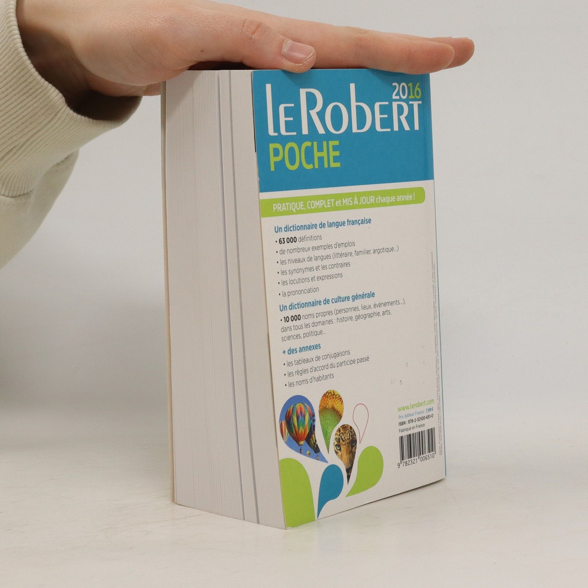 Dimensions du 10,7 x 5 x 17,7 cm Un dictionnaire de langue française 63 000 définitions de nombreux exemples d'emplois les niveaux de langues (littéraire, familier, argotique...) les synonymes et les contraires les locutions et expressions la prononciation Un dictionnaire de culture générale 10 000 noms propres (personnes, lieux, événements...), dans tous les domaines : histoire, géographie, arts, sciences, politiques... + des annexes : les tableaux de conjugaisons les règles d'accord du participe passé les noms d'habitants
