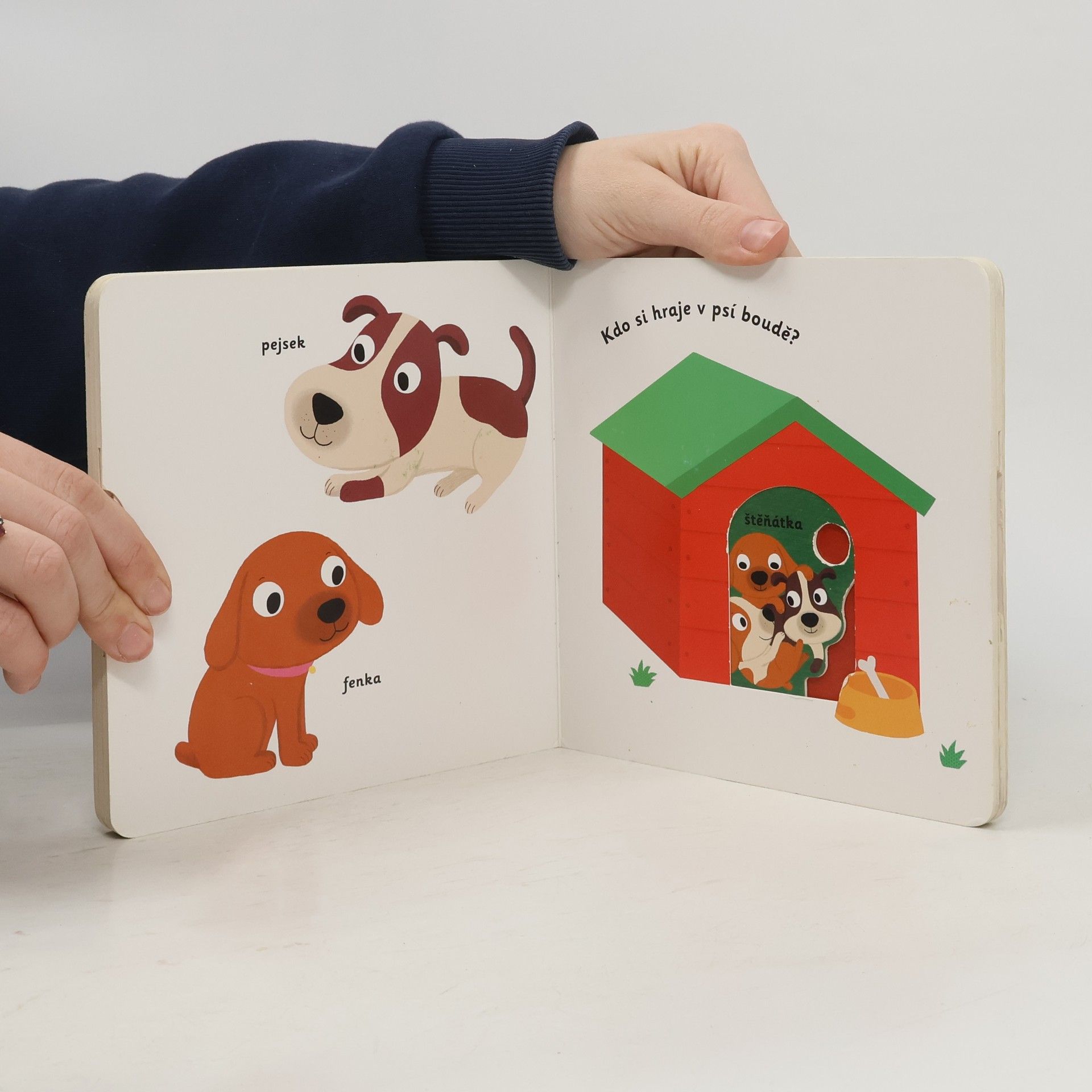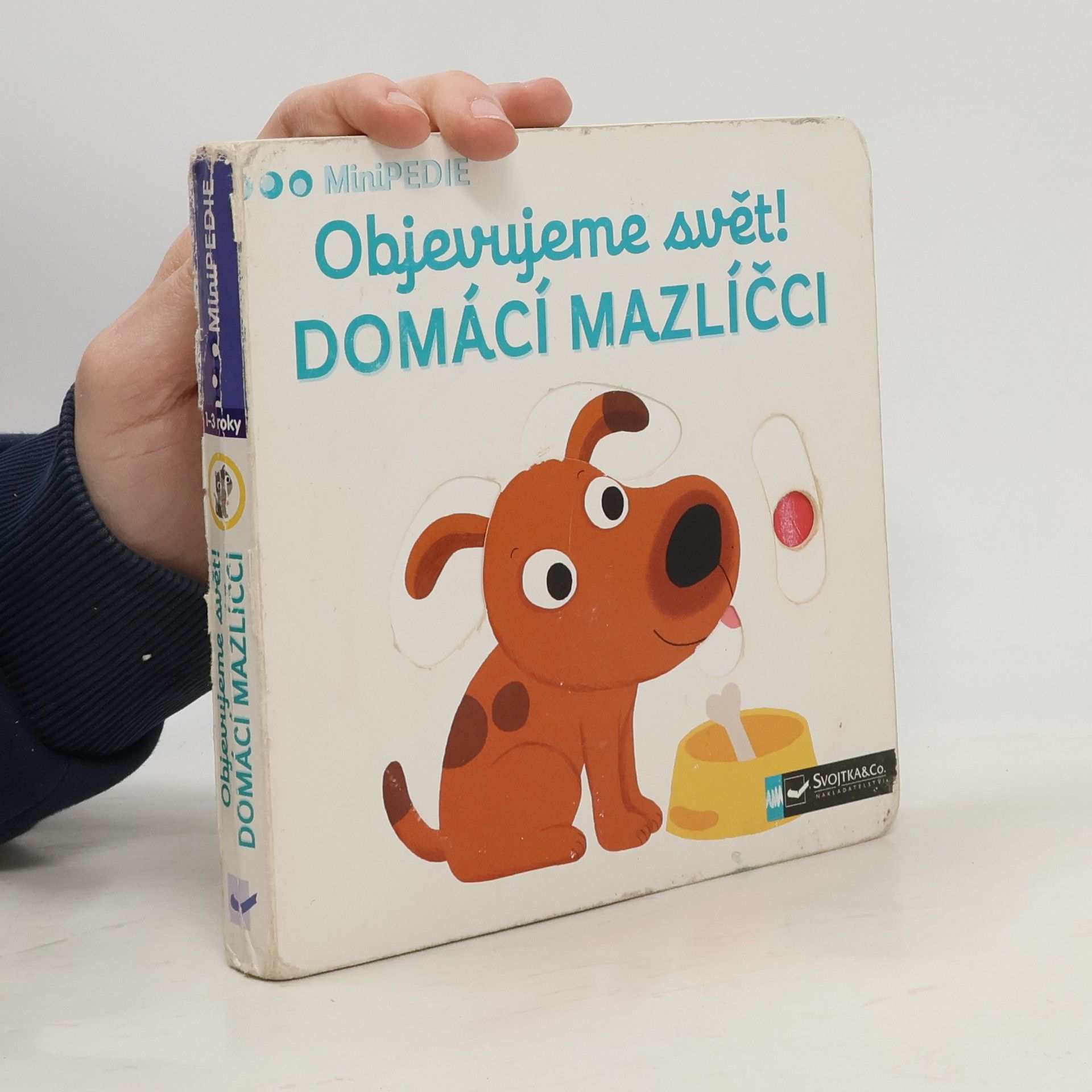 Objevovat svět zvířátek a domácích mazlíčků je s tímto leporelem tak zábavné! Kdo si hraje s klubíčkem vlny? Kdo žije v tomto akváriu? Kdo si hraje v psí boudě? Kdo běhá v kolečku? Pojmenuj zvířátka a ukaž, které máš nejraději! Stačí jen vložit prstík do správného otvoru, lehce posunout nebo otočit ve směru šipky a hned bude váš malý objevitel nebo objevitelka znát odpovědi. Leporelo je určeno pro nejmenší děti od jednoho roku a má pevné stránky s posuvnými prvky, a tak si naši nejmenší mohou při prohlížení a pojmenovávání procvičit i jemnou motoriku.