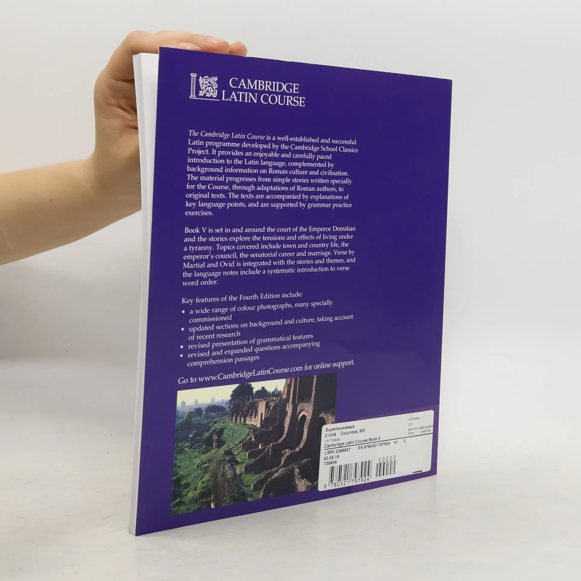 The Cambridge Latin Course is a well-established five-part Latin programme whose approach combines a stimulating, continuous storyline with grammatical development, work on derivatives, and cultural information. There is also a complete Language Information section, plus numerous colour photographs illustrating life in the Roman world. The Course has now been fully revised and updated in the light of feedback from user schools, and includes the very best in new research. The Fourth Edition continues to offer students and teachers alike a stimulating, reading-based approach to the study of Latin. Book V is set in and around the court of the Emperor Domitian. The topics covered are: town and country life, the emperor's council, the senatorial career, recitationes and the writing of literature, marriage, and the lawcourts. Verse by Martial and Ovid is integrated with the stories.