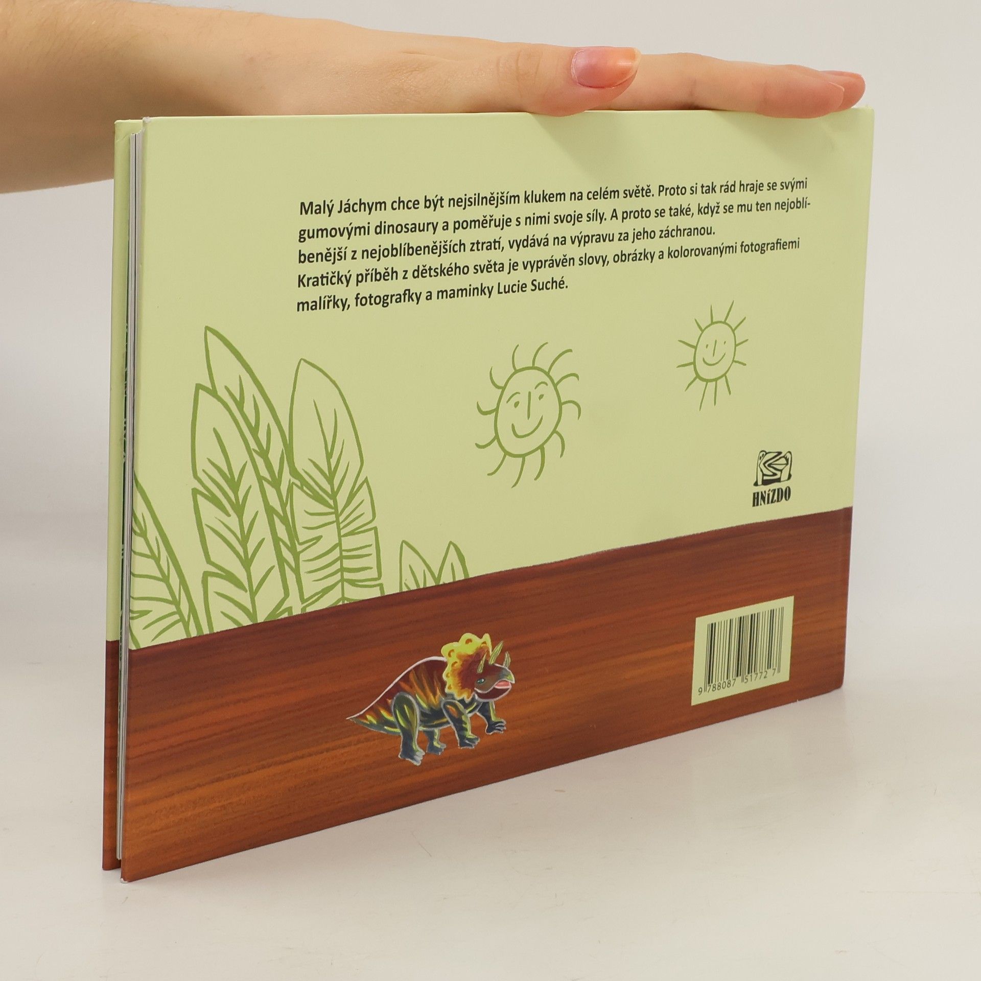 Malý Jáchym chce být nejsilnějším klukem na celém světě. Proto si tak rád hraje se svými gumovými dinosaury a poměřuje s nimi svoje síly. A proto se také, když se mu ten nejoblíbenější z nejoblíbenějších ztratí, vydává na výpravu za jeho záchranou. Kratičký příběh z dětského světa je vyprávěn slovy, obrázky a kolorovanými fotografiemi malířky a fotografky Lucie Suché, maminky tří kluků.