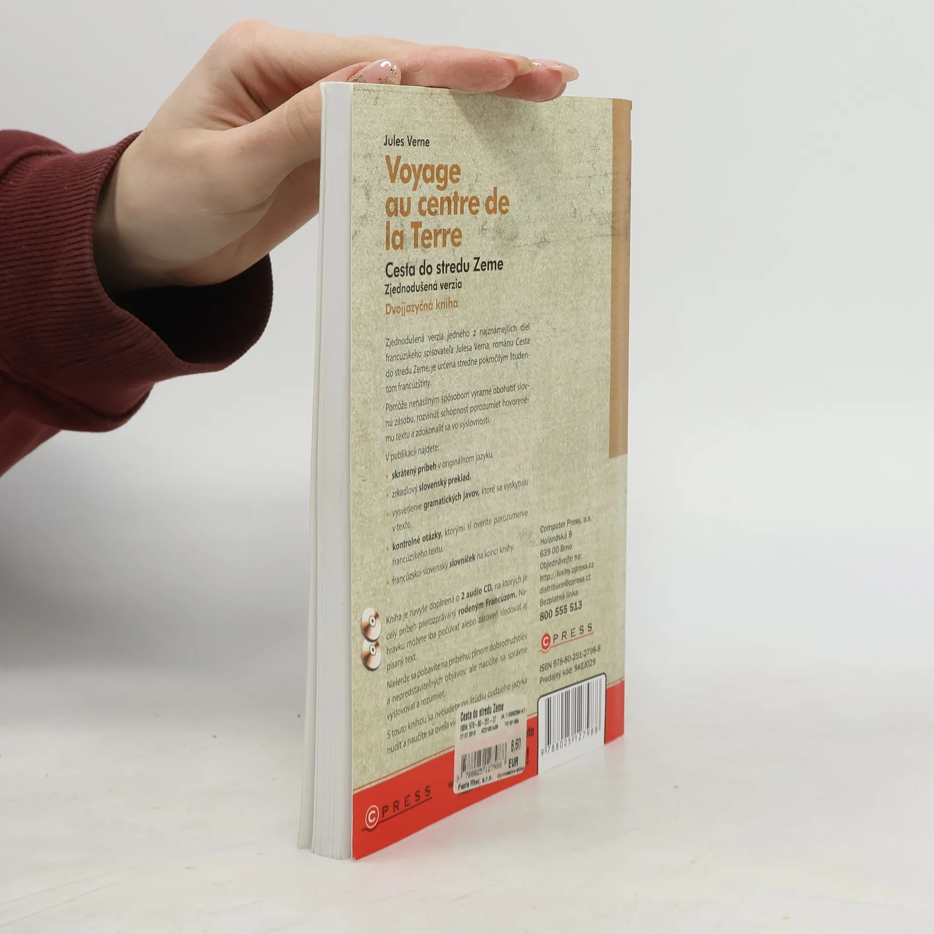 Zjednodušená verzia jedného z najznámejších diel francúzskeho spisovateľa Julesa Verna, románu Cesta do stredu Zeme, je určená stredne pokročilým študentom francúzštiny. Pomôže nenásilným spôsobom výrazne obohatiť slovnú zásobu, rozvinúť schopnosť porozumieť hovorenému textu a zdokonaliť sa vo výslovnosti. Nahrávku môžete iba počúvať alebo zároveň sledovať aj písaný text. Nielenže sa pobavíte na príbehu, plnom dobrodružstiev a nepredstaviteľných objavov, ale naučíte sa správne vyslovovať a rozumieť. S touto knihou sa nebudete pri štúdiu cudzieho jazyka nudiť a naučíte sa oveľa viac.