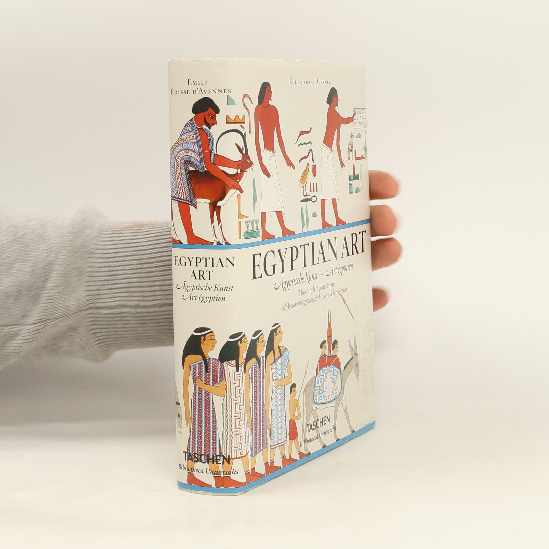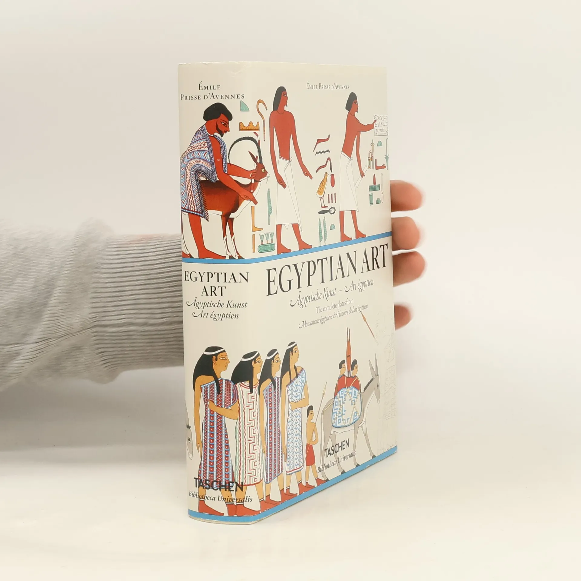 In seiner leidenschaftlichen Bewunderung für die Fähigkeiten altägyptischer und orientalischer Künstler leistete der französische Orientalist Émile Prisse d’Avennes (1807–1879) Bahnbrechendes in der Ägyptologie. Schon als Jugendlicher träumte er davon, den Orient zu erkunden, und begann mit 19 Jahren seine Reisen, die ihn nach Griechenland, Palästina und Indien führten. In den folgenden 40 Jahren bereiste er Syrien, die Arabische Halbinsel und Persien und lebte auch in Ägypten und Algerien. Unter dem Namen Idris Effendi erkundete er Ägypten und schrieb später in seiner Geschichte der ägyptischen Kunst über die Eleganz und den Luxus dieser Zeit, als die ägyptische Kunstfertigkeit ihren Höhepunkt erreichte. 1844 reiste Prisse d’Avennes von Alexandria nach Frankreich, wo er 1847 die Monuments égyptiens veröffentlichte, einen Band mit 51 Tafeln basierend auf seinen Zeichnungen aus Ägypten. Nach einem weiteren Aufenthalt in Nordafrika kehrte er 1860 nach Paris zurück, ausgestattet mit Hunderten von Zeichnungen, Fotografien, Skizzen und 400 Metern an Basreliefs. Fasziniert von der Symmetrie und Opulenz der ägyptischen Kunst schuf er Sammelwerke, die seine Forschungen zum historischen und sozialen Kontext sowie zu Originaldokumenten einfließen ließen. 1878/79 erschien sein vollständiges Kompendium zur ägyptischen Kunst mit 159 beeindruckenden Tafeln, die hier erstmals in einem handlichen Band vereint und vollständig veröffentlicht w