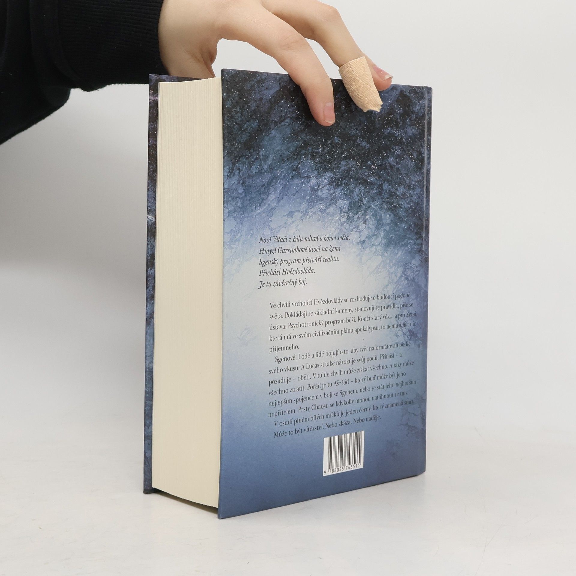 Velkolepé vyvrcholení nejobsáhlejší české sci-fi ságy Mycelium je zde. Intriky, psychotronika a krvavé oběti. Všechno míří právě sem. Tohle už je konec. Ve chvíli vrcholící Hvězdovlády se rozhoduje o budoucí podobě světa. Psychotronický program běží. Končí starý věk... a pro Zemi, která má ve svém civilizačním plánu apokalypsu, to nemusí být nic příjemného. Sgenové, Lodě a lidé bojují o to, aby svět naformátovali podle svého vkusu. A Lucas si také nárokuje svůj podíl. Přináší – a požaduje – oběti. V tuhle chvíli může získat všechno. A taky může všechno ztratit. Aš~šád může být jeho nejlepším spojencem v boji se Sgenem, nebo se stát jeho nejhorším nepřítelem. Prsty Chaosu se kdykoliv mohou natáhnout ze tmy. V osudí plném bílých míčků je jeden černý, který znamená smrt. Může to být vítězství. Nebo zkáza. Nebo naděje.