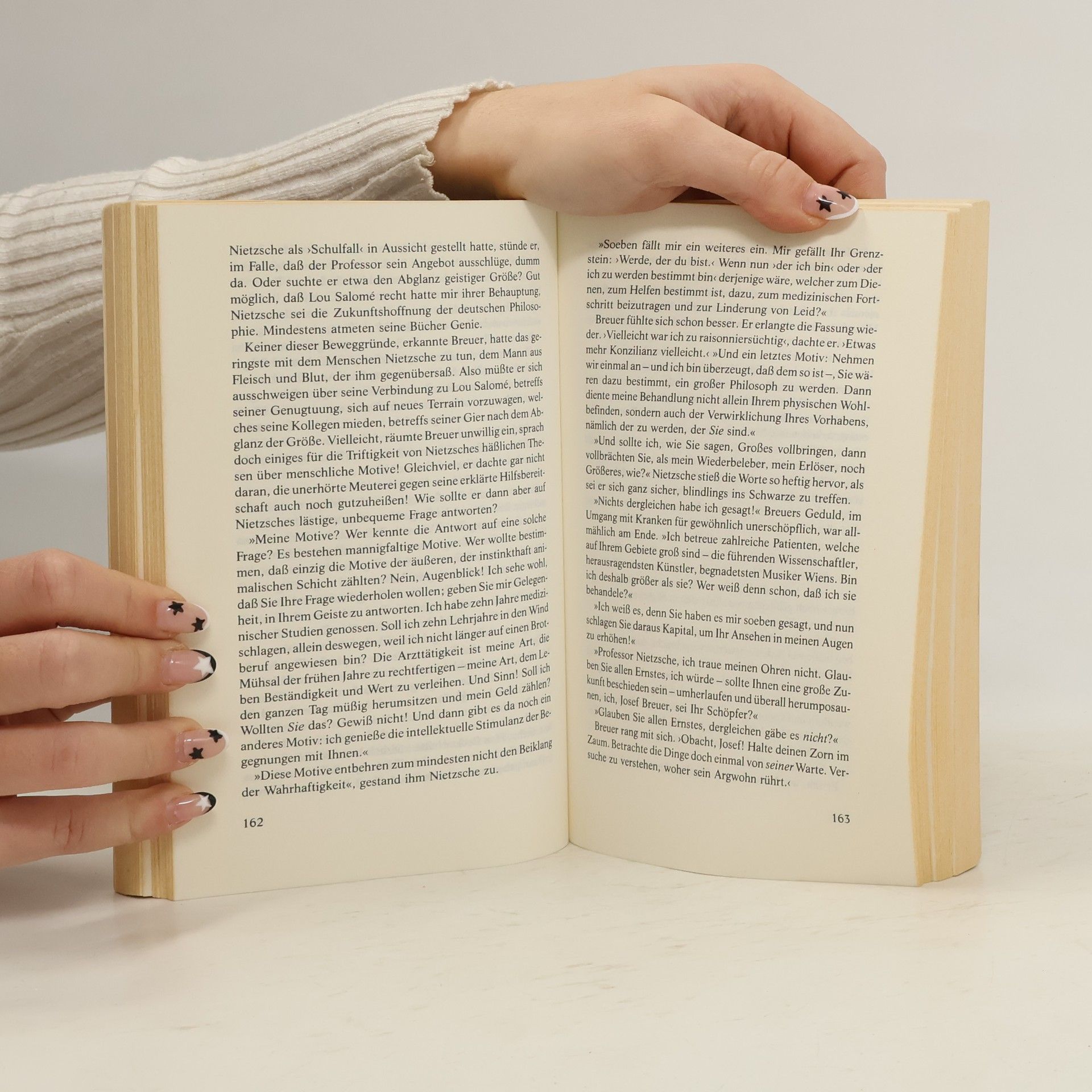Eine Ménage à trois zwischen Lou Andreas Salomé, Nietzsche und der Psychoanalyse Das Wien des Fin de siècle: Die selbstbewusste junge Russin Lou Andreas Salomé drängt den angesehenen Arzt Josef Breuer, dem suizidgefährdeten Friedrich Nietzsche zu helfen und ihn von seiner zerstörerischen Obsession für sie zu kurieren. Breuer willigt ein und unterzieht Nietzsche einer neuartigen Heilungsmethode, deren Ausgang jedoch für beide unerwartet ist. Ausstattung: sechs s/w-Fotos