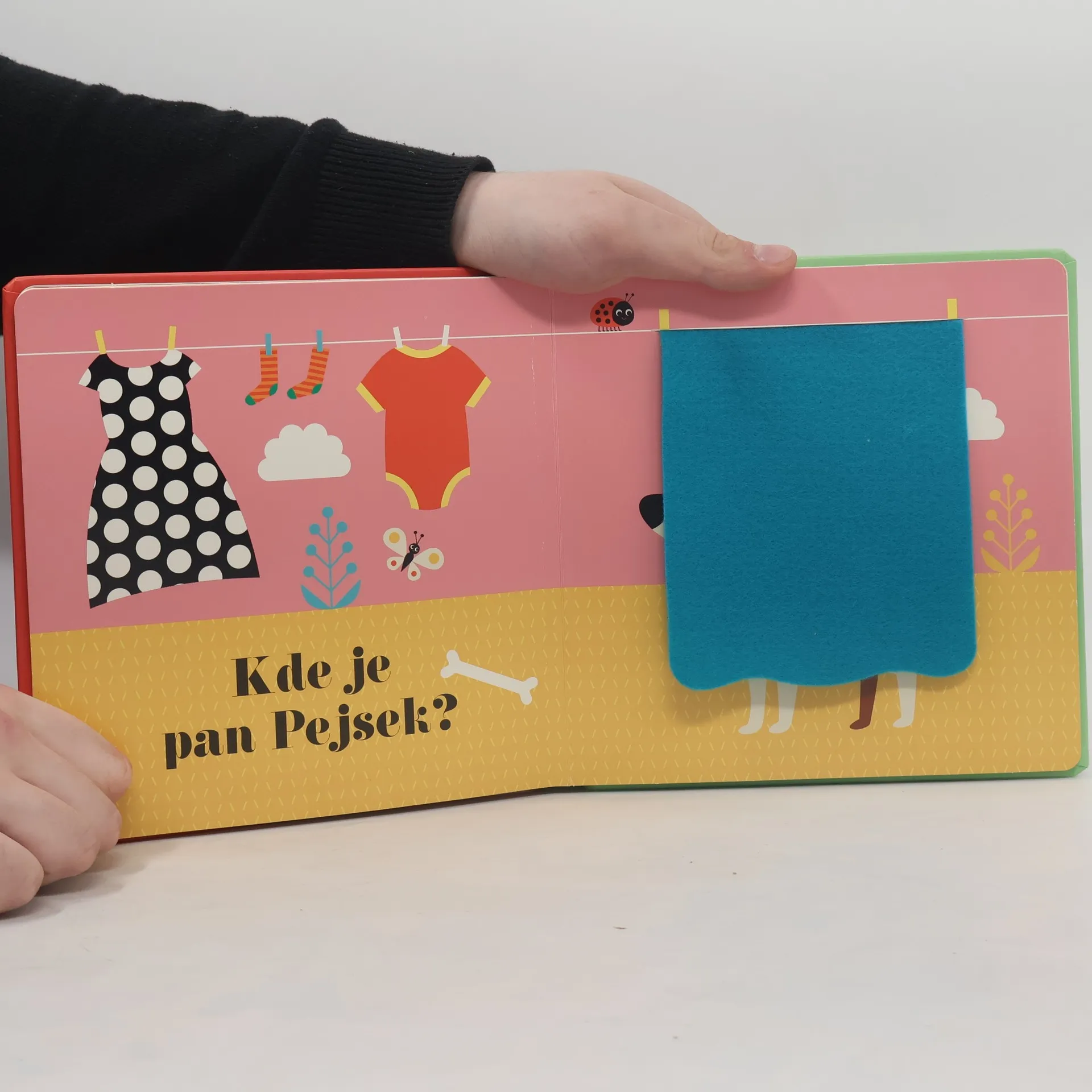 Knížka vhodná pro nejmenší děti a pro jejich první seznamovaní se světem. Rozvíjí jejich zrak, hmat a motorické schopnosti. Děti budou hledat schovaná zvířátka, měkké detaily z plsti umožní dětem zlepšovat poznávání světa hmatem. Na konci knihy na děti vykoukne překvapení. V malém kulatém zrcátku uvidí… Kohopak? No přece sebe!