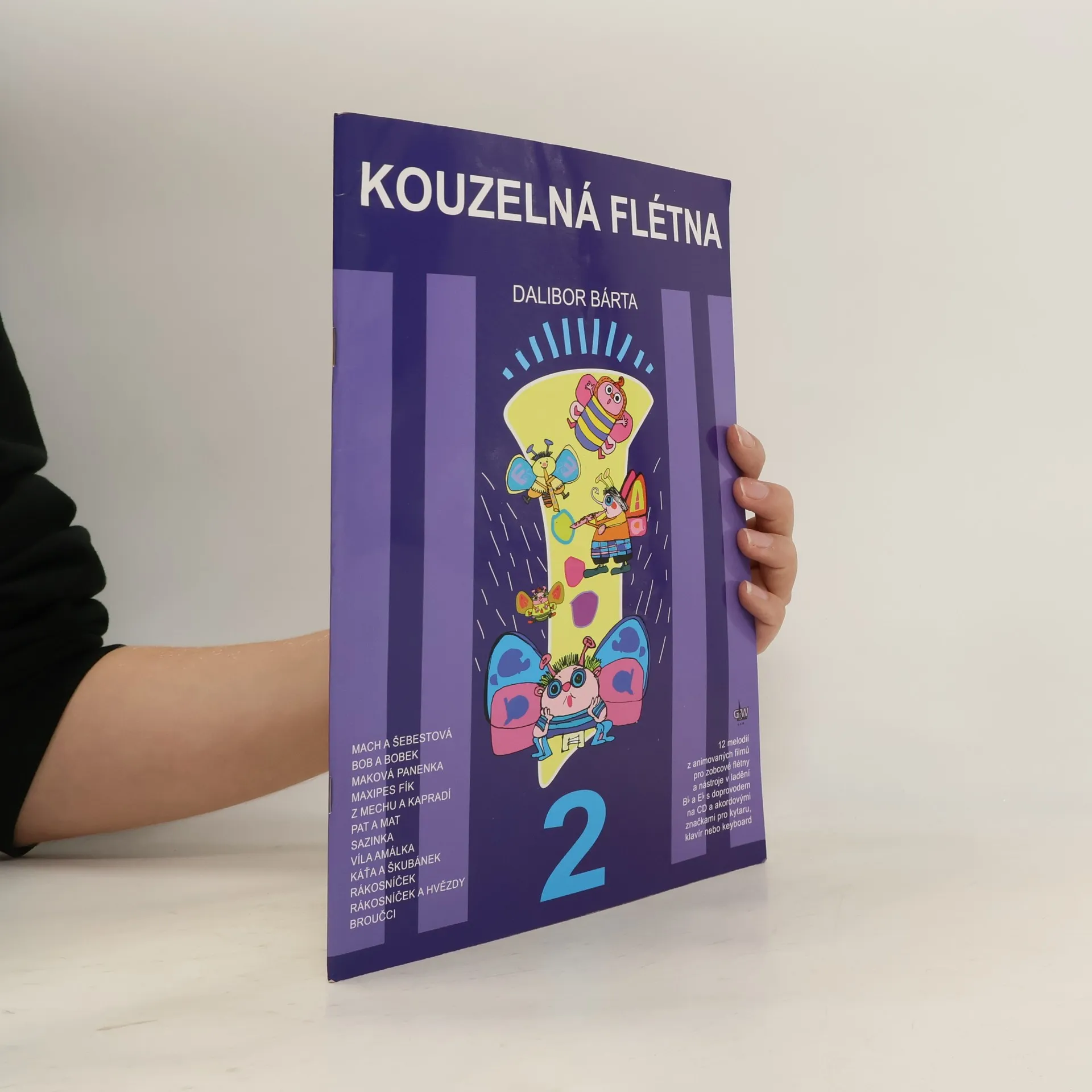 Druhý díl Kouzelné flétny přináší melodie ze světa animovaných filmů, známé z televizní obrazovky jako Večerníčky. Jednotlivé skladby jsou vybírány nejen s ohledem na obsah, nýbrž i s přihlédnutím k jejich případnému metodickému využití (frázování, složené takty, melodické ozdoby, ). Na CD, které je součástí sešitu, jsou vždy dvě nahrávky od každé skladby: první s nahraným sólovým hlasem (to abyste si mohli poslechnout, případně porovnat interpretaci, či nějaké obtížnější místo) a druhá bez sólového hlasu, určená pro vás a vaši interpretaci.