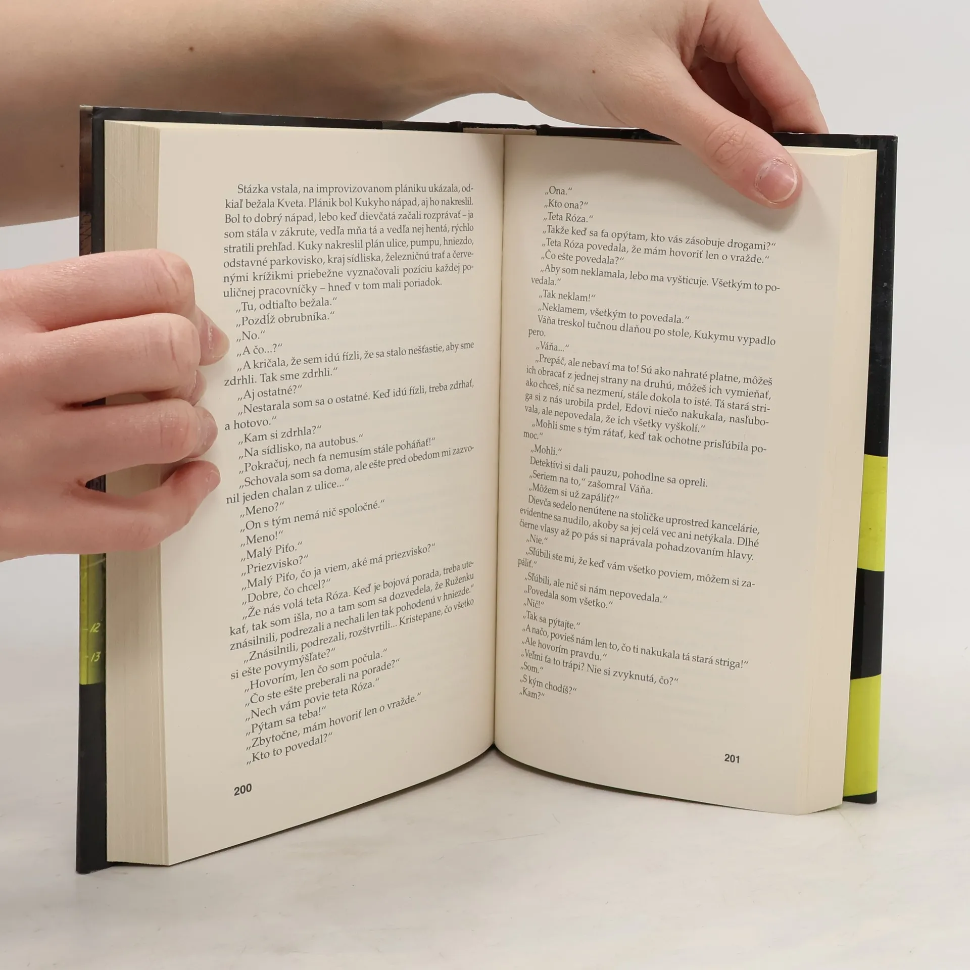 Niektoré z temných stránok nového demokratického režimu - drogy a prostitúcia - na seba nedali dlho čakať, prejavili sa krátko po revolúcii. Chlapci z oddelenia vrážd sa s nimi stretávali bežne aj predtým, no v menej drastickej podobe. Dnes nemali šťastie, vrah sa činil, nešetril ani ich, ani ju - mladú pouličnú prostitútku dopichal, podrezal a naaranžoval jej mŕtvolu tak, akoby ležala vystavená na márach. Ale bola naozaj podrezaná? Naozaj ju vystavil, aby im chcel zanechať nejaký odkaz? Zahráva sa s nimi? Detektívi zatiaľ netušia, či stopy na mieste činu čítajú správne, či im do mozaiky nechýbajú tie najdôležitejšie kamienky. Veľa času nemajú, zvlášť ak im hneď na začiatku vyšetrovania svojským spôsobom skríži cestu starý známy - hudobný skladateľ. Spácha samovraždu. Za jeden deň dva prípady spojené zvláštnou niťou, nezvyčajnými stopami. Zatiaľ nevedia, či im neušlo niečo dôležité. Je všetko tak, ako vidia na vlastné oči, alebo sú obidva zdanlivo nesúvisiace prípady zahalené tajomným závojom? Jedno je jasné, ak neodhalia tajomstvo skryté za oponou, ak nezmenia uhol pohľadu, záhada nebude nikdy vyriešená.