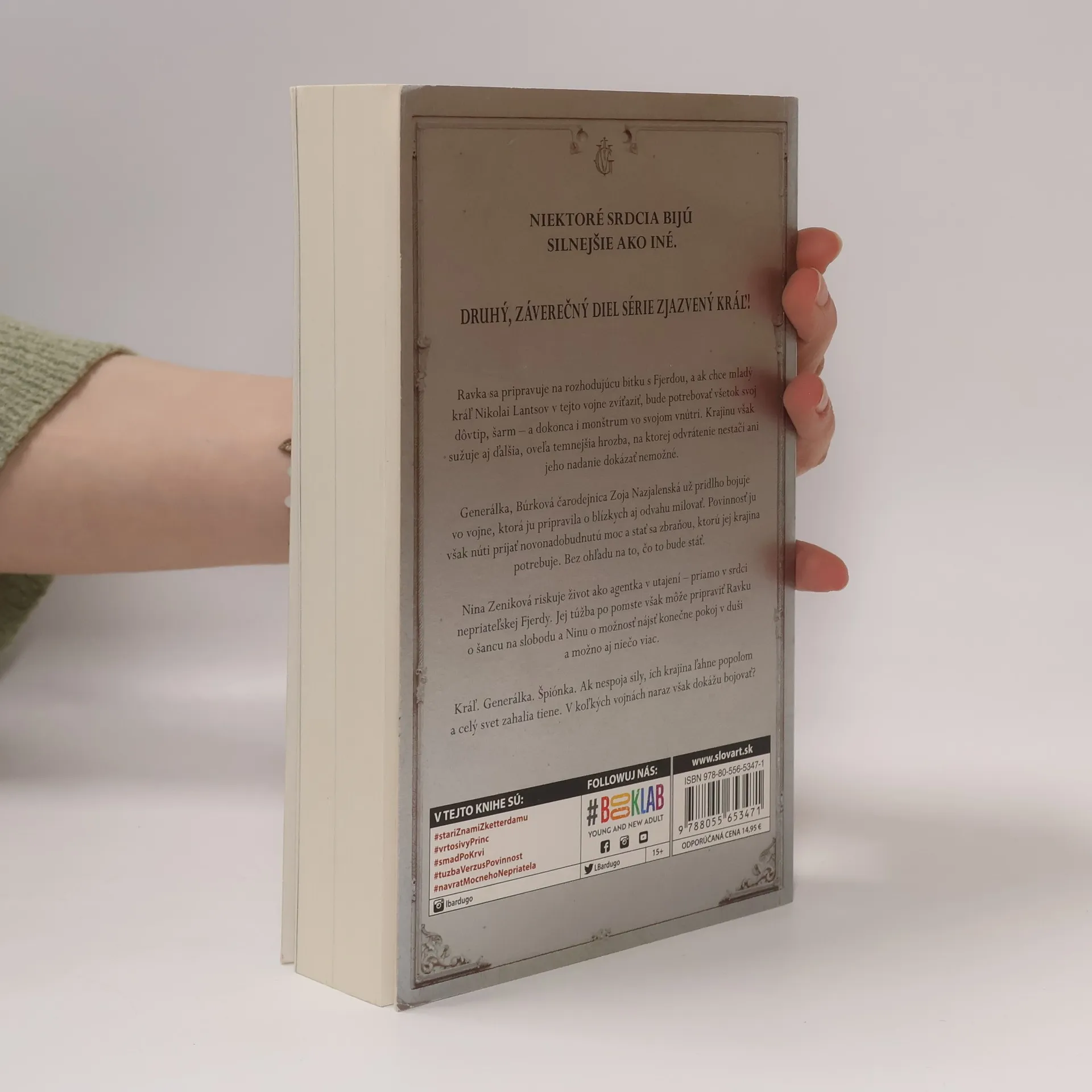 Ďalšia kniha z magického sveta gríš, ktorý ožil v seriálovom hite na Netflixe! Ravka sa pripravuje na rozhodujúcu bitku s Fjerdou, a ak chce mladý kráľ Nikolai Lantsov jej obrovskú armádu poraziť, bude potrebovať všetok svoj dôvtip a šarm – a dokonca aj monštrum vo svojom vnútri. Krajinu však sužuje aj ďalšia, oveľa temnejšia hrozba, na ktorej ani jeho nadanie robiť z nemožného možné nestačí. Generálka, Búrková čarodejnica Zoja Nazjalenská už prišla vo vojne o veľa. Zočila smrť svojho mentora a vzkriesenie najväčšieho nepriateľa, povinnosť ju však núti prijať novonadobudnutú moc a stať sa zbraňou, ktorú jej krajina potrebuje. Bez ohľadu na to, čo to bude stáť. Kým sa jej priatelia a spojenci pripravujú na osudový boj, Nina Zeniková riskuje život počas práce v utajení – priamo v srdci nepriateľskej Fjerdy. Jej túžba po pomste však môže pripraviť Ravku o šancu na slobodu a Ninu o možnosť zahojiť jej trúchliace srdce. Kráľ. Generálka. Špiónka. Spoločne musia nájsť spôsob, ako v temnote vykročiť k budúcnosti. Alebo sledovať, ako ich krajina ľahne popolom a celý svet zahalia tiene.