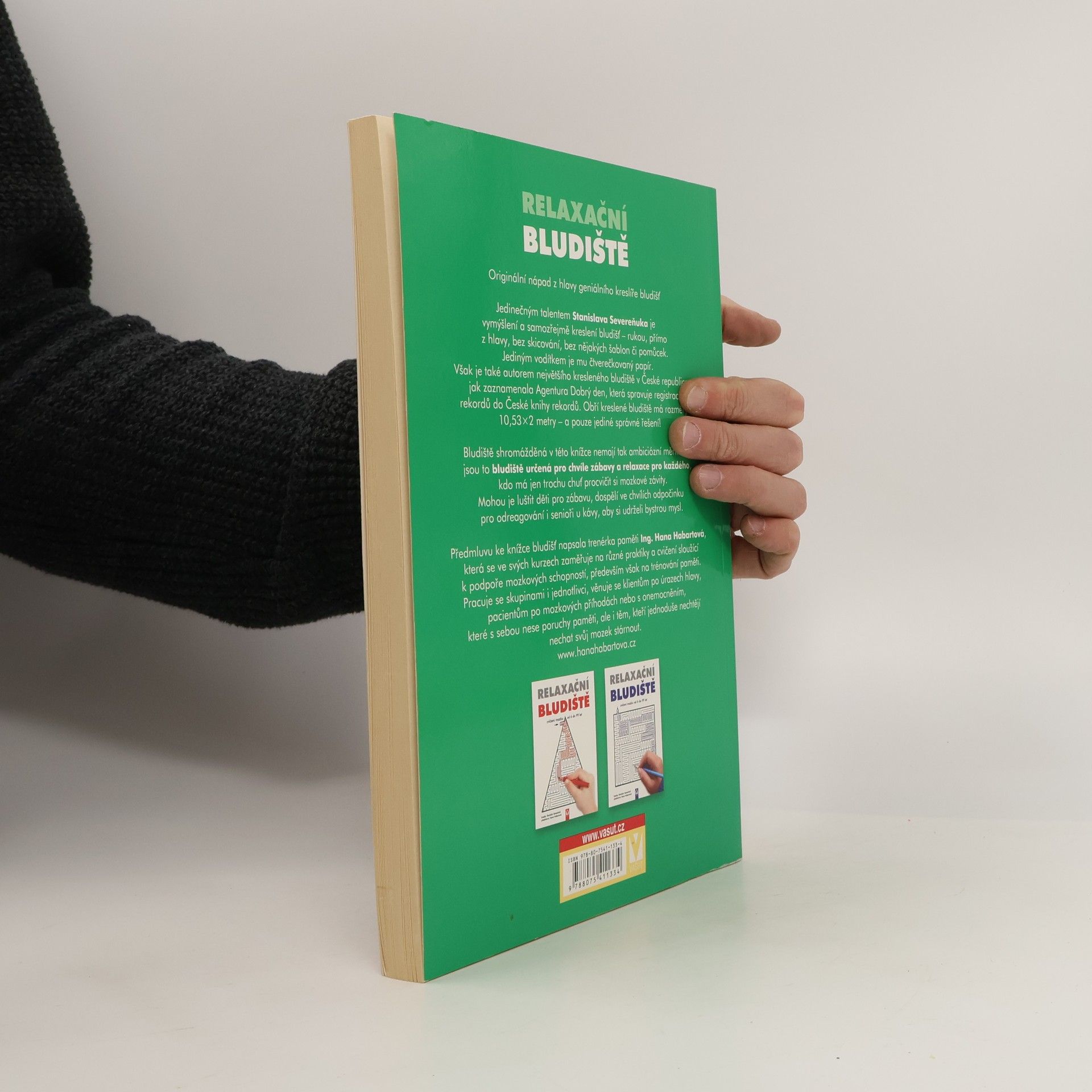Relaxační bludiště – cvičení mozku od 6 do 99 let Originální nápad z hlavy geniálního kreslíře bludišť Jedinečným talentem Stanislava Severeňuka je vymýšlení a samozřejmě kreslení bludišť – rukou, přímo z hlavy, bez skicování, bez nějakých šablon či pomůcek. Jediným vodítkem je mu čtverečkovaný papír. Však je také autorem největšího kresleného bludiště v České republice, jak zaznamenala Agentura Dobrý den, která spravuje registraci rekordů do České knihy rekordů. Obří kreslené bludiště má rozměry 10,53×2 metry – a pouze jediné správné řešení! Bludiště shromážděná v této knížce nemají tak ambiciózní měřítko – jsou to bludiště určená pro chvíle zábavy a relaxace pro každého, kdo má jen trochu chuť procvičit si mozkové závity. Mohou je luštit děti pro zábavu, dospělí ve chvílích odpočinku pro odreagování i senioři u kávy, aby si udrželi bystrou mysl. Předmluvu ke knížce bludišť napsala trenérka paměti Ing. Hana Habartová, která se ve svých kurzech zaměřuje na různé praktiky a cvičení sloužící k podpoře mozkových schopností, především však na trénování paměti. Pracuje se skupinami i jednotlivci, věnuje se klientům po úrazech hlavy, pacientům po mozkových příhodách nebo s onemocněním, které s sebou nese poruchy paměti, ale i těm, kteří jednoduše nechtějí nechat svůj mozek stárnout.