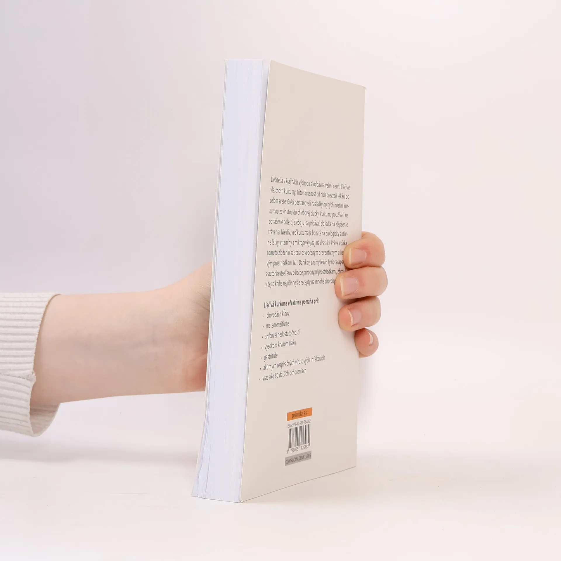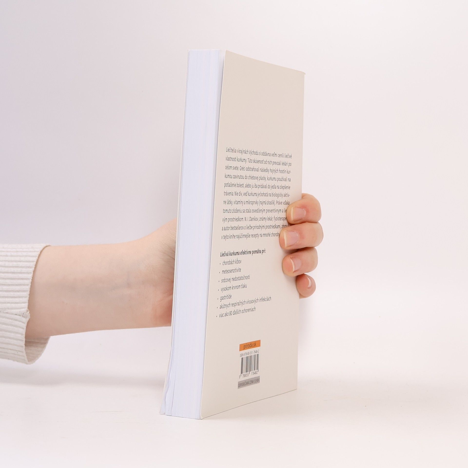 Liečitelia v krajinách Východu si oddávna veľmi cenili liečivé vlastnosti kurkumy. Túto skúsenosť od nich prevzali lekári po celom svete. Gréci odstraňovali následky hojných hostín kurkumou zavinutou do chlebovej placky, kurkumu používali na potlačenie bolesti, alebo ju iba pridávali do jedla na zlepšenie trávenia. Nie div, veď kurkuma je bohatá na biologicky aktívne látky, vitamíny a mikroprvky (najmä draslík). Práve vďaka tomuto zloženiu sa stala osvedčeným preventívnym a liečivým prostriedkom. N. I. Danikov, známy lekár fyzioterapeut a autor bestsellerov o liečbe prírodnými prostriedkami, zhrnul v tejto knihe najúčinnejšie recepty na mnohé choroby. Liečivá kurkuma efektívne pomáha pri: • chorobách kĺbov • meteosenzitivite • srdcovej nedostatočnosti • vysokom krvnom tlaku • gastritíde • akútnych respiračných vírusových infekciách. Z ruského originálu Celebnaja kurkuma (Eksmo, Moskva 2018) preložila Želmíra Talajová.