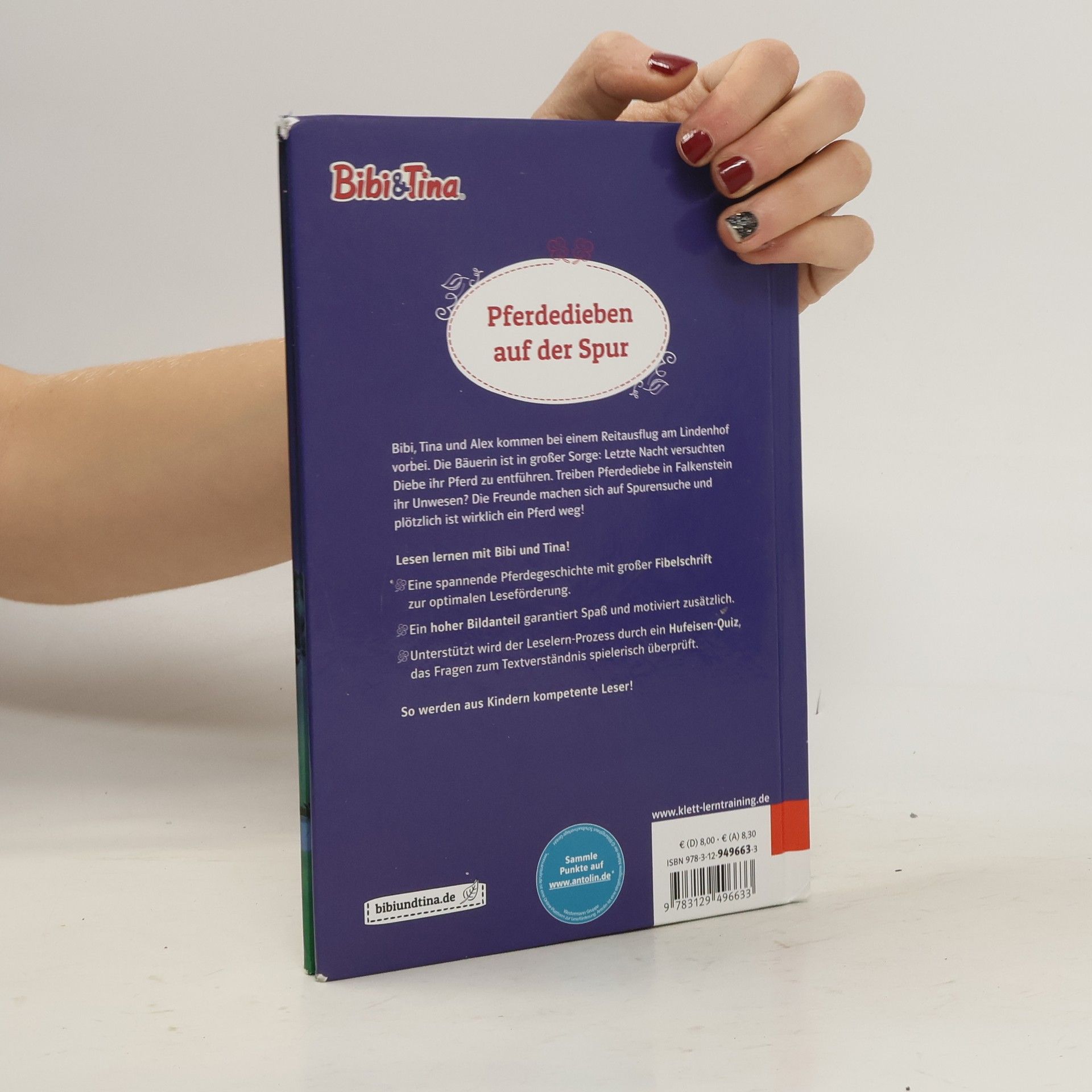 Lesen lernen mit Bibi und Tina – das Bibi und Tina Buch für die 2. Klasse Bibi, Tina und Alex kommen bei einem Reitausflug am Lindenhof vorbei. Die Bäuerin ist in großer Sorge: Letzte Nacht versuchten Diebe ihr Pferd zu entführen. Treiben Pferdediebe in Falkenstein ihr Unwesen? Die Freunde machen sich auf Spurensuche und plötzlich ist wirklich ein Pferd weg! Eine spannende Pferdegeschichte mit großer Fibelschrift zur optimalen Leseförderung Viele schöne Bilder motivieren beim Lesen und machen Spaß Das Hufeisenquiz unterstüzt den Leselern-Prozess und überprüft spielerisch das Textverständnis der Leseanfänger Ein schönes Geschenk für Mädchen und Jungen ab 7 Jahre So werden aus Kindern kompetente Leser!