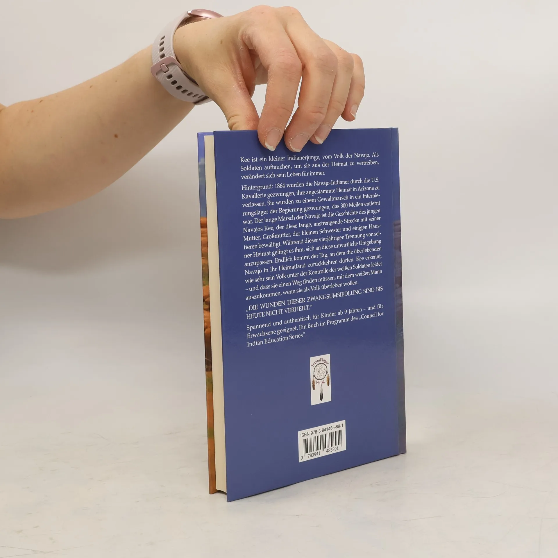 Kee ist ein kleiner Indianerjunge, vom Volk der Navajo. Als Soldaten auftauchen, um sie aus der Heimat zu vertreiben, verändert sich sein Leben für immer. 1864 wurden die Navajo-Indianer durch die U.S. Kavallerie gezwungen, ihre angestammte Heimat in Arizona zu verlassen. Sie wurden zu einem Gewaltmarsch in ein Internierungslager der Regierung gezwungen, das 300 Meilen entfernt war. Der lange Marsch der Navajo ist die Geschichte des jungen Navajos Kee, der diese lange, anstrengende Strecke mit seiner Mutter, Großmutter, der kleinen Schwester und einigen Haustieren bewältigt. Während dieser 4-jährigen Trennung von seiner Heimat gelingt es ihm, sich an diese unwirtliche Umgebung anzupassen. Endlich kommt der Tag, an dem die überlebenden Navajo in ihr Heimatland zurückkehren dürfen. Kee erkennt, wie sehr sein Volk unter der Kontrolle der weißen Soldaten leidet - und dass sie einen Weg finden müssen, mit dem weißen Mann auszukommen, wenn sie als Volk überleben wollen."DIE WUNDEN DIESER ZWANGSUMSIEDLUNG SIND BIS HEUTE NICHT VERHEILT"Spannend und authentisch für Kinder ab 9 Jahren – und für Erwachsene geeignet. Ein Buch im Programm des "Council for Indian Education Series"