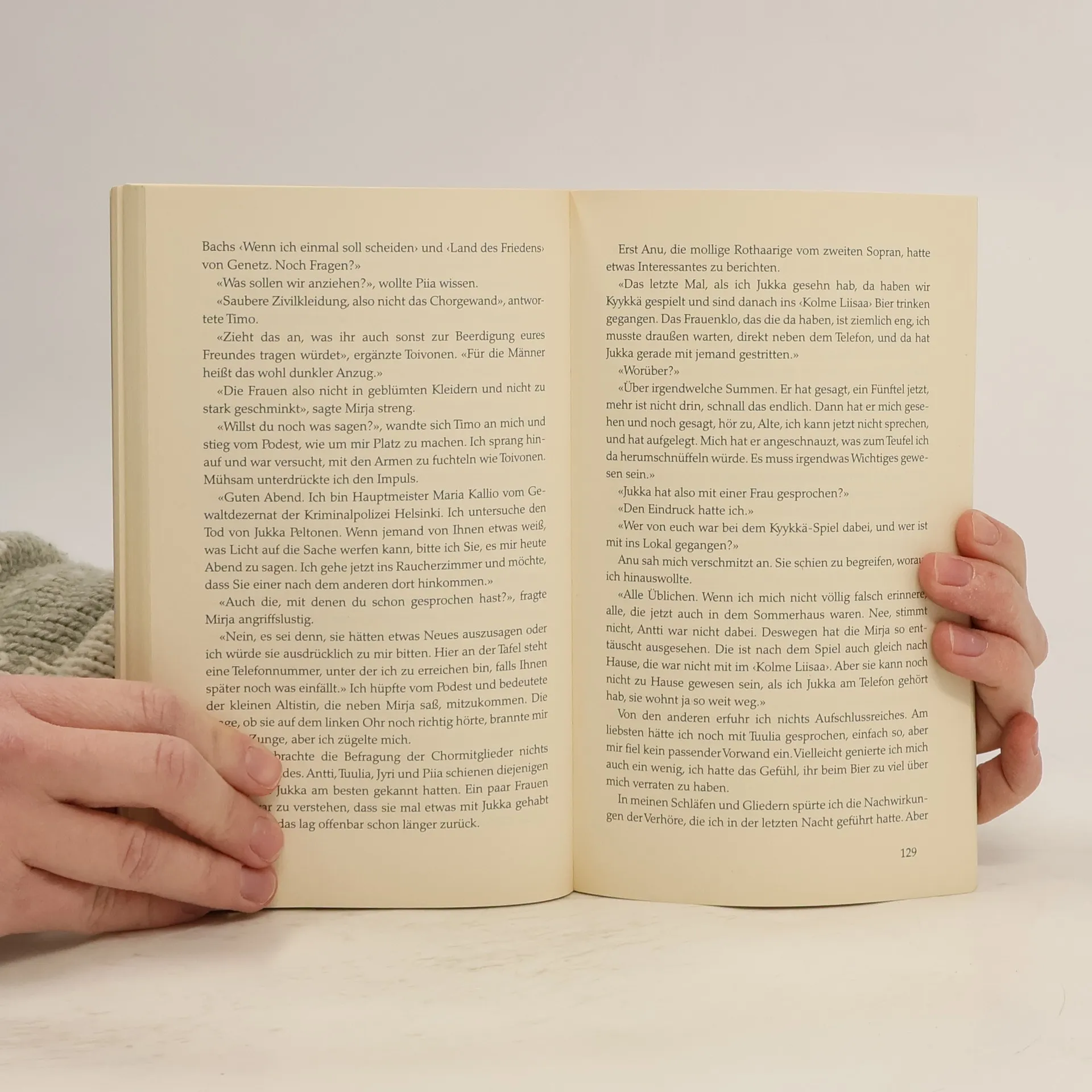 Jukka Peltonen wird im flachen Uferwasser der Ostsee ermordet aufgefunden. Maria Kallio befindet sich in einer schwierigen Situation, als ihr die Ermittlungen in diesem Mordfall übertragen werden: Sie kennt den jungen Mann aus Studienzeiten gut – ebenso wie die anderen Männer und Frauen, die mit ihm das Wochenende auf dem Land verbrachten. Sie alle sind Mitglieder eines Chors, seit Jahren befreundet, in ihrer Liebe zur Musik und in wechselnden Liebschaften einander verbunden. Und doch hat jemand aus dem Chor Jukka ermordet.Maria Kallio, die finnische Kommissarin, muss den Mörder im Freundeskreis entlarven.