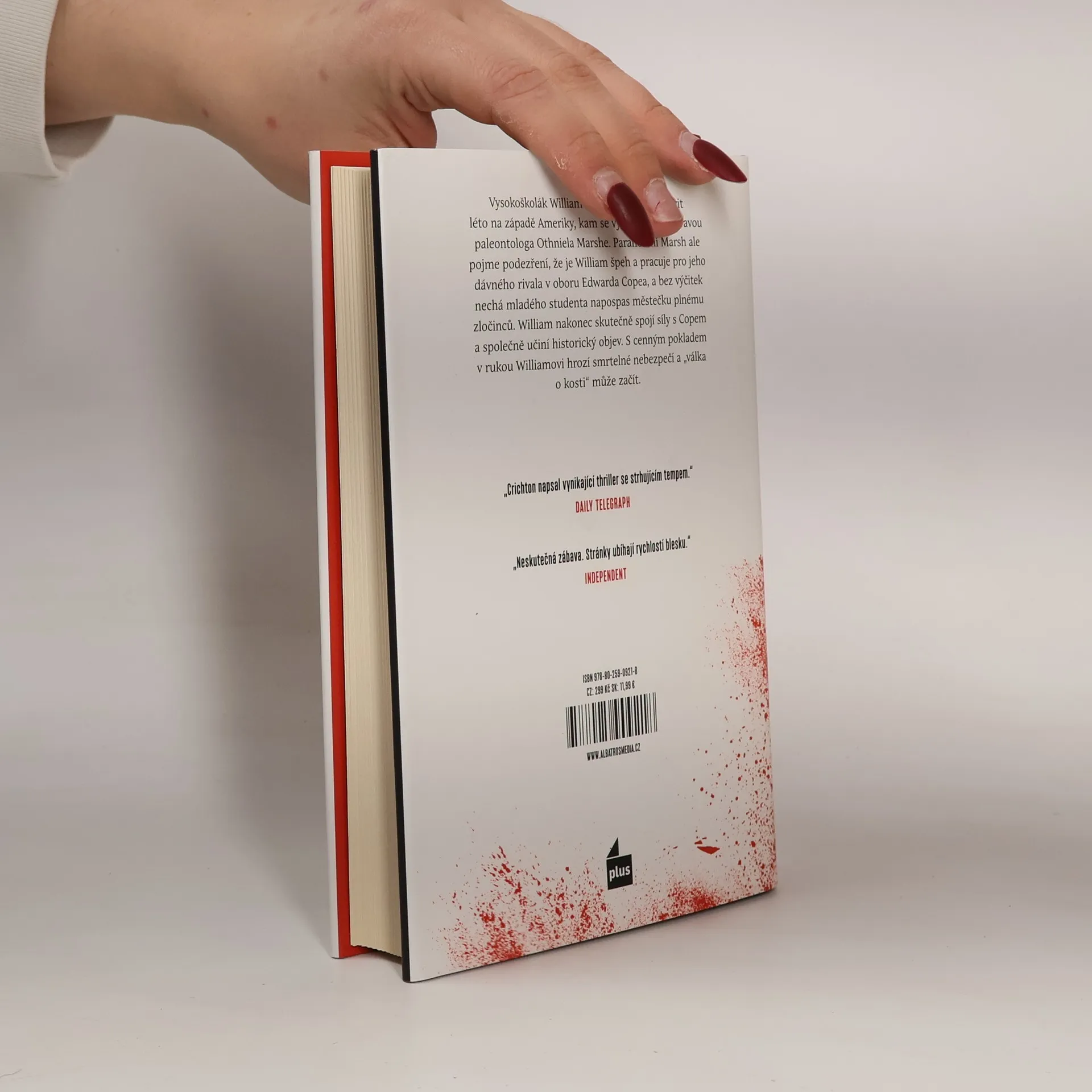 Píše se rok 1876 a vysokoškolák William musí strávit léto na západě Ameriky, a proto se přidá k paleontologovi Othnielu Marshovi. Paranoidní Marsh pojme podezření, že je William špeh a pracuje pro jeho dávného rivala v oboru, Edwina Copea, a tak nechá mladého studenta napospas městečku plnému zločinců. William nakonec skutečně spojí síly s Copem a společně učiní historický objev. S cenným pokladem v rukou Williamovi hrozí smrtelné nebezpečí a „válka o kosti“ může začít. – Román slavného spisovatele a scenáristy Michaela Crichtona (Jurský park, Kmen Andromeda, Pohotovost a další) z roku 1974 byl nalezen posmrtně a anglicky vyšel až v roce 2017. Inspiruje se skutečnými událostmi, které vešly do dějin pod názvem „válka o kosti“ – jednalo se o rivalitou dvou paleontologů, kteří neváhali udělat cokoli, aby soupeře v honbě za těmi nejzajímavějšími objevy pošpinili. Paleontologie jako věda se díky tomuto sporu nesmírně rozvinula. Crichton v románu umně kombinuje napínavý příběh s atmosférou Divokého západu a důkladnými rešeršemi ohledně paleontologických reálií. -- „Zábavný historický thriller. Fanoušci Crichtonových napínavých historických románů budou nadšení.“ – Publishers Weekly