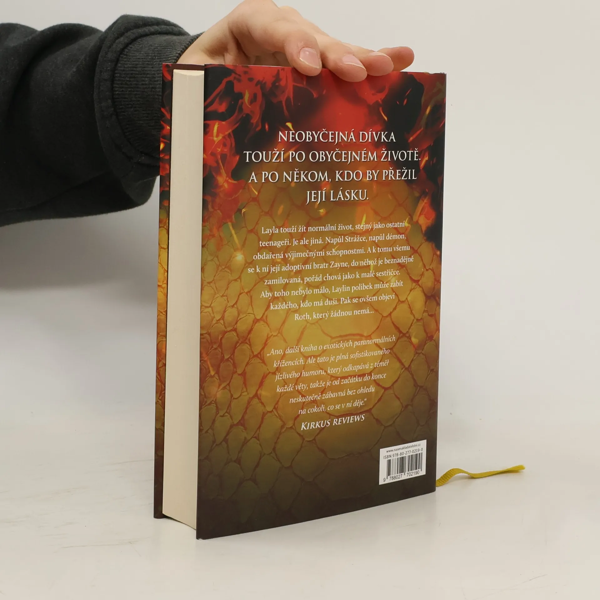 Jediný polibek může zabít Layla touží vést normální život teenagera. Chce trávit čas ve škole s kamarády a chodit na rande. Je ale jiná než ostatní a její celoživotní láska, adoptivní bratr Zayne, s ní jedná jako s malou sestřičkou. Zayne je součástí klanu Strážců, kteří byli shůry pověřeni lovem démonů a obranou lidstva. Layla je napůl Strážce, napůl démon a je obdařena výjimečnými schopnostmi. Její polibek má navíc smrtící účinky na každého, kdo má duši. Na scénu vstupuje Roth, výřečný a sebevědomý démon, který Laylu vyvádí z míry, protože zná její nejhlubší tajemství. Roth je šarmantní, pohledný a sexy. Pro Laylu je proto čím dál obtížnější držet si ho od těla a nevěřit jeho slovům, která do jejího života vnášejí pochyby. Démoni navíc nemají duši… Layla stojí před obtížnou volbou, která se jí může stát osudnou. Starosti s polibkem jdou stranou ve chvíli, kdy se na obzoru začne rýsovat povstání démonů, které může narušit rovnováhu života na Zemi. A Layla ví, že musí udělat vše pro to, aby povstání zabránila, a to i za cenu oběti a zrady vlastní rodiny. První díl série Dark Elements.