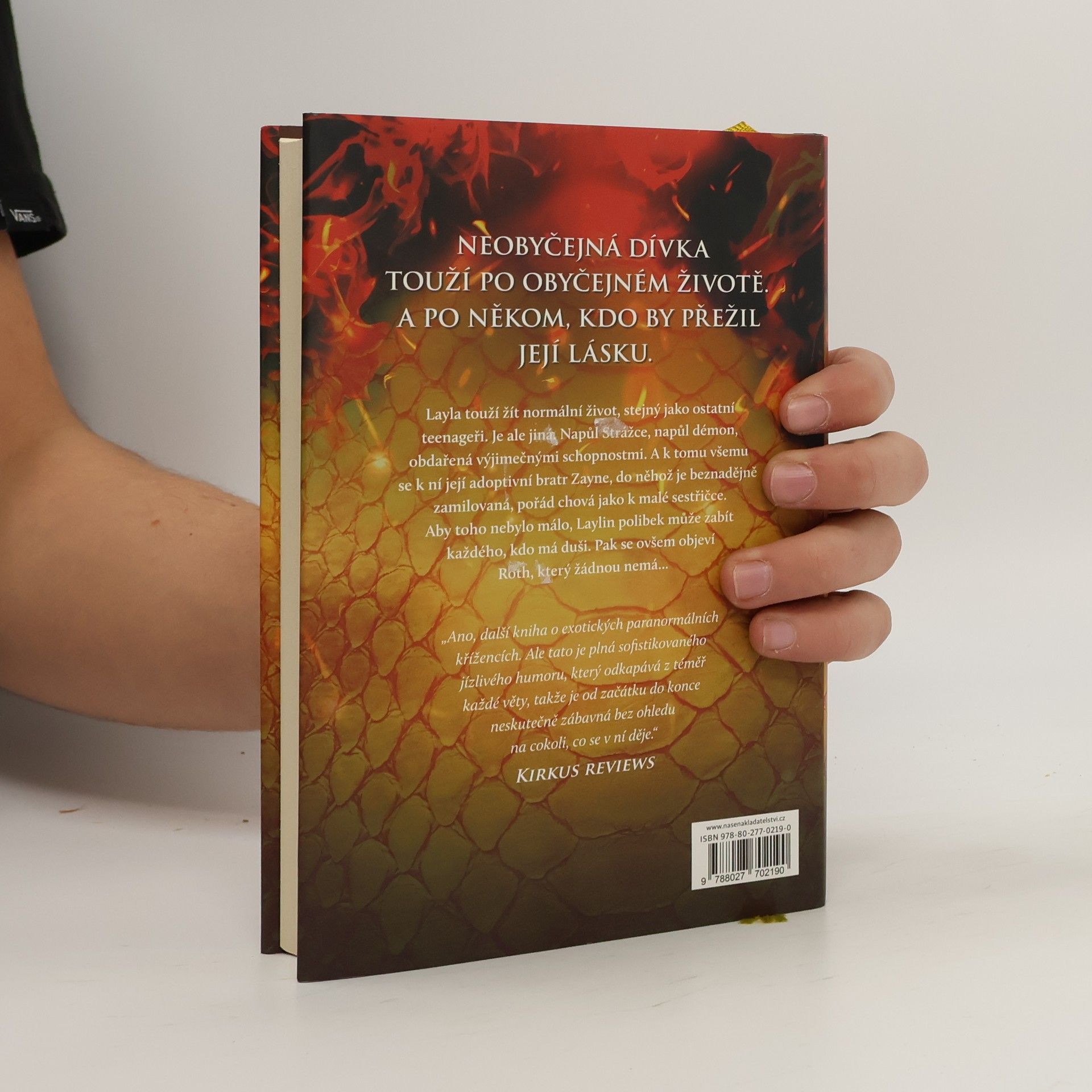 Jediný polibek může zabít Layla touží vést normální život teenagera. Chce trávit čas ve škole s kamarády a chodit na rande. Je ale jiná než ostatní a její celoživotní láska, adoptivní bratr Zayne, s ní jedná jako s malou sestřičkou. Zayne je součástí klanu Strážců, kteří byli shůry pověřeni lovem démonů a obranou lidstva. Layla je napůl Strážce, napůl démon a je obdařena výjimečnými schopnostmi. Její polibek má navíc smrtící účinky na každého, kdo má duši. Na scénu vstupuje Roth, výřečný a sebevědomý démon, který Laylu vyvádí z míry, protože zná její nejhlubší tajemství. Roth je šarmantní, pohledný a sexy. Pro Laylu je proto čím dál obtížnější držet si ho od těla a nevěřit jeho slovům, která do jejího života vnášejí pochyby. Démoni navíc nemají duši… Layla stojí před obtížnou volbou, která se jí může stát osudnou. Starosti s polibkem jdou stranou ve chvíli, kdy se na obzoru začne rýsovat povstání démonů, které může narušit rovnováhu života na Zemi. A Layla ví, že musí udělat vše pro to, aby povstání zabránila, a to i za cenu oběti a zrady vlastní rodiny. První díl série Dark Elements.