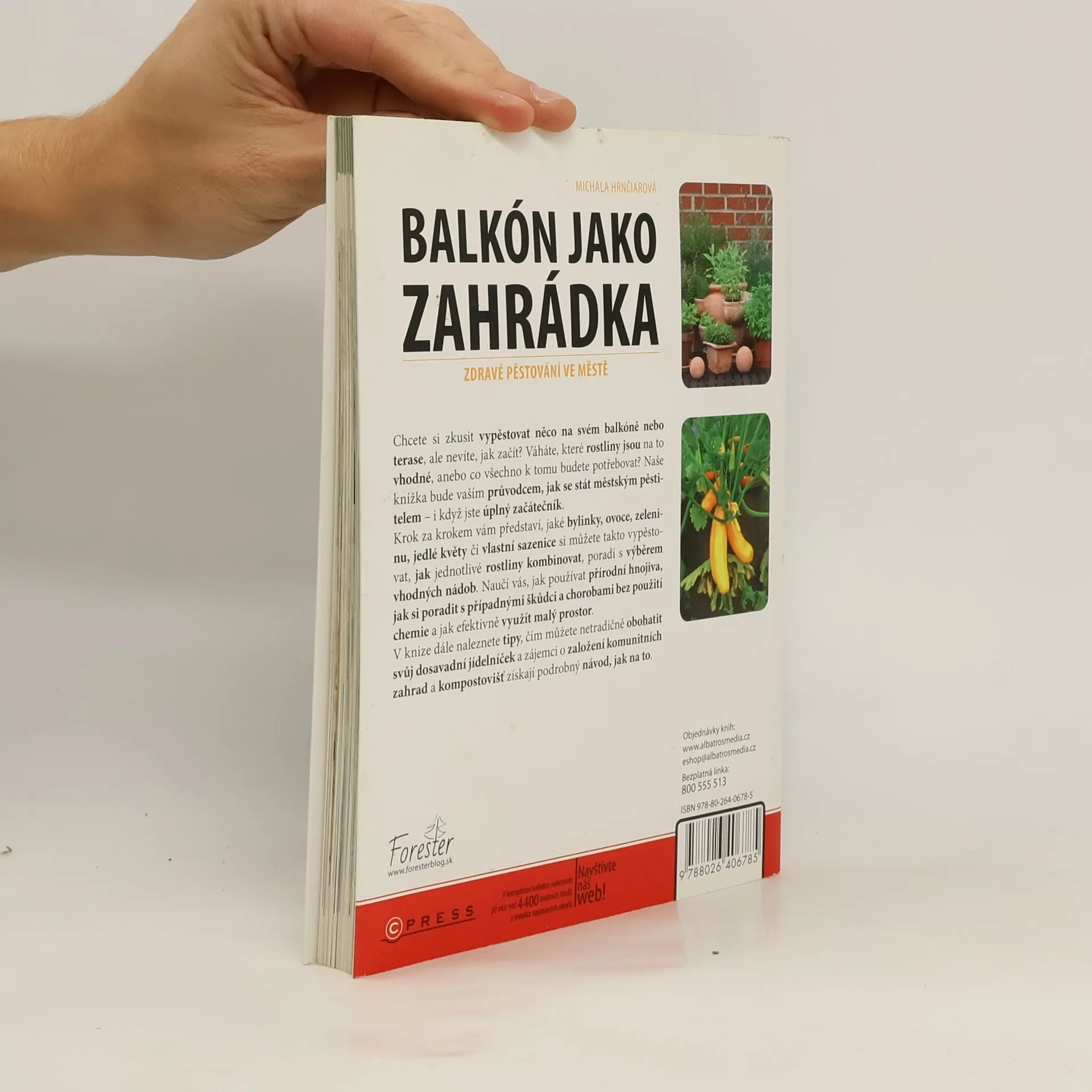 Zdravé pěstování ve městě. Chcete si zkusit vypěstovat něco na svém balkoně nebo terase, ale nevíte, jak začít? Váháte, které rostliny jsou na to vhodné, anebo co všechno k tomu budete potřebovat? Naše knížka bude vaším průvodcem, jak se stát městským pěstitelem – i když jste úplný začátečník. Krok za krokem vám představí, jaké bylinky, ovoce, zeleninu, jedlé květy či vlastní sazenice si můžete takto vypěstovat, jak jednotlivé rostliny kombinovat a poradí s výběrem vhodných nádob. Naučíte se používat přírodní hnojiva, získáte cenné rady jak si poradit s případnými škůdci a chorobami bez použití chemie a také jak efektivně využít malý prostor. V knize dále naleznete tipy, čím můžete netradičně obohatit svůj dosavadní jídelníček a zájemci o založení komunitních zahrad a kompostovišť získají podrobný návod, jak na to.