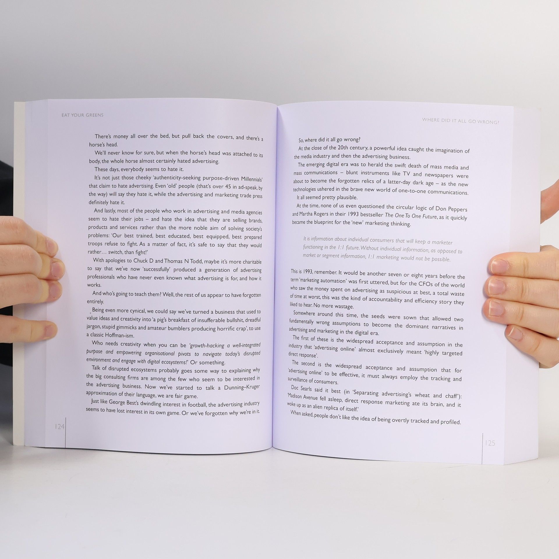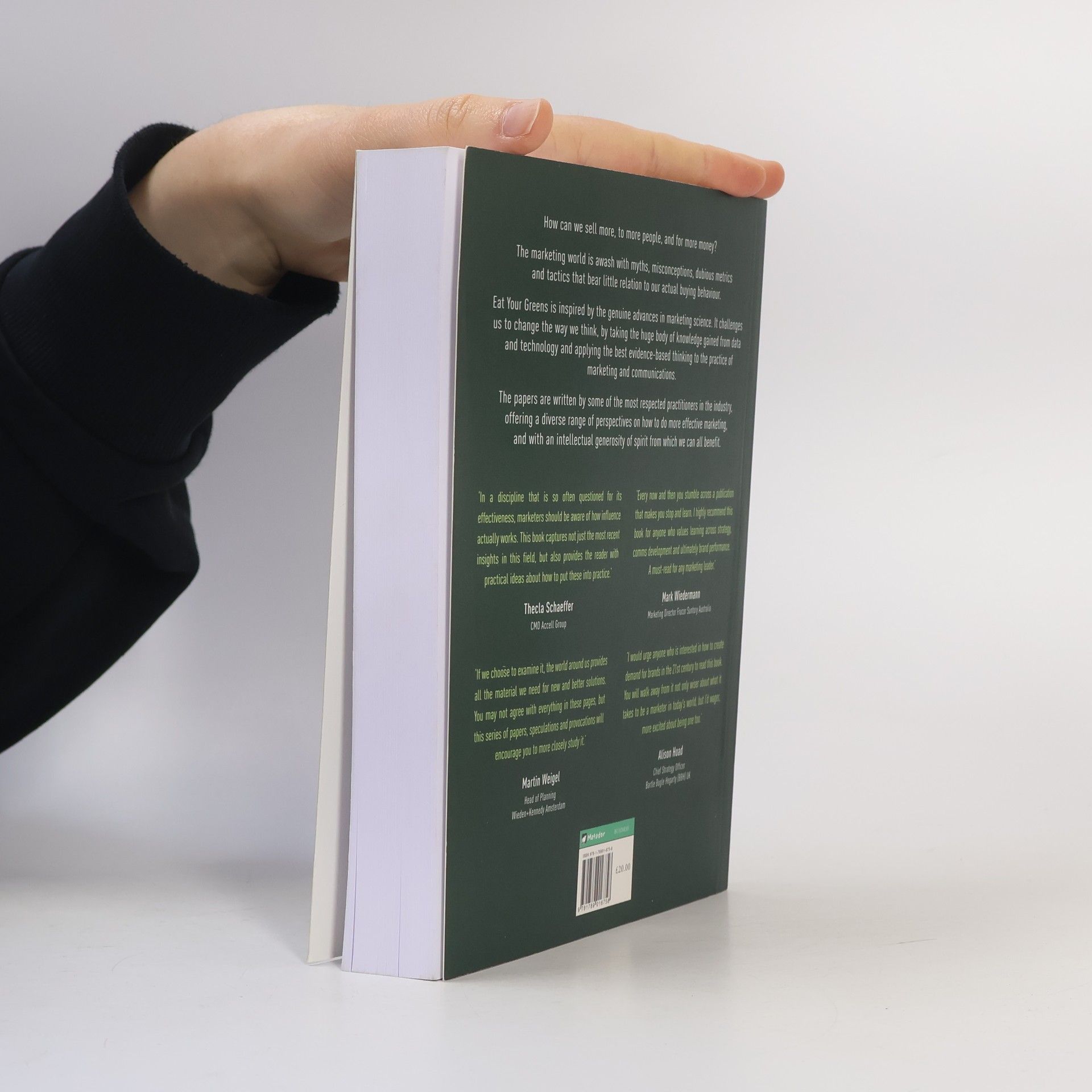 How can we sell more, to more people, and for more money? The marketing world is awash with myths, misconceptions, dubious metrics and tactics that bear little relation to our actual buying behaviour. Eat Your Greens is inspired by the genuine advances in marketing science. It challenges us to change the way we think, by taking the huge body of knowledge gained from data and technology and applying the best evidence based thinking to the practice of marketing and communications. The papers are written by some of most respected practitioners in the industry, offering a diverse range of perspectives on how to do more effective marketing, and with an intellectual generosity of spirit from which we can all profit. The book is curated by Wiemer Snijders, partner at Commercial Works.