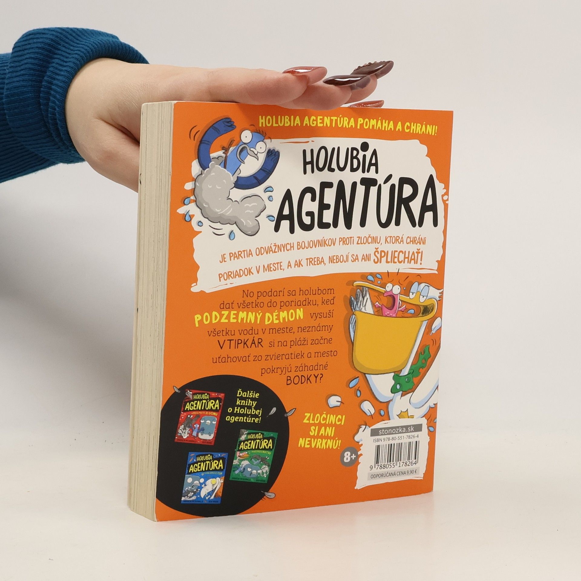 Poznáte Holubiu agentúru? Je to jednotka neúnavných bojovníkov proti zločinu. Ak sa vám zdá, že holuby sa občas správajú zvláštne, nemýlite sa. Sledujú totiž rôzne záškodnícke živly, odvážne čelia nebezpečenstvu a zločinci si ani nevrknú! No podarí sa holubom dať všetko do poriadku, keď podzemný démon vysuší všetku vodu v meste, neznámy vtipkár si na pláži začne uťahovať zo zvieratiek a mesto pokryjú záhadné bodky? Dozviete sa v štvrtej časti bláznivej série s kriminálnou zápletkou.