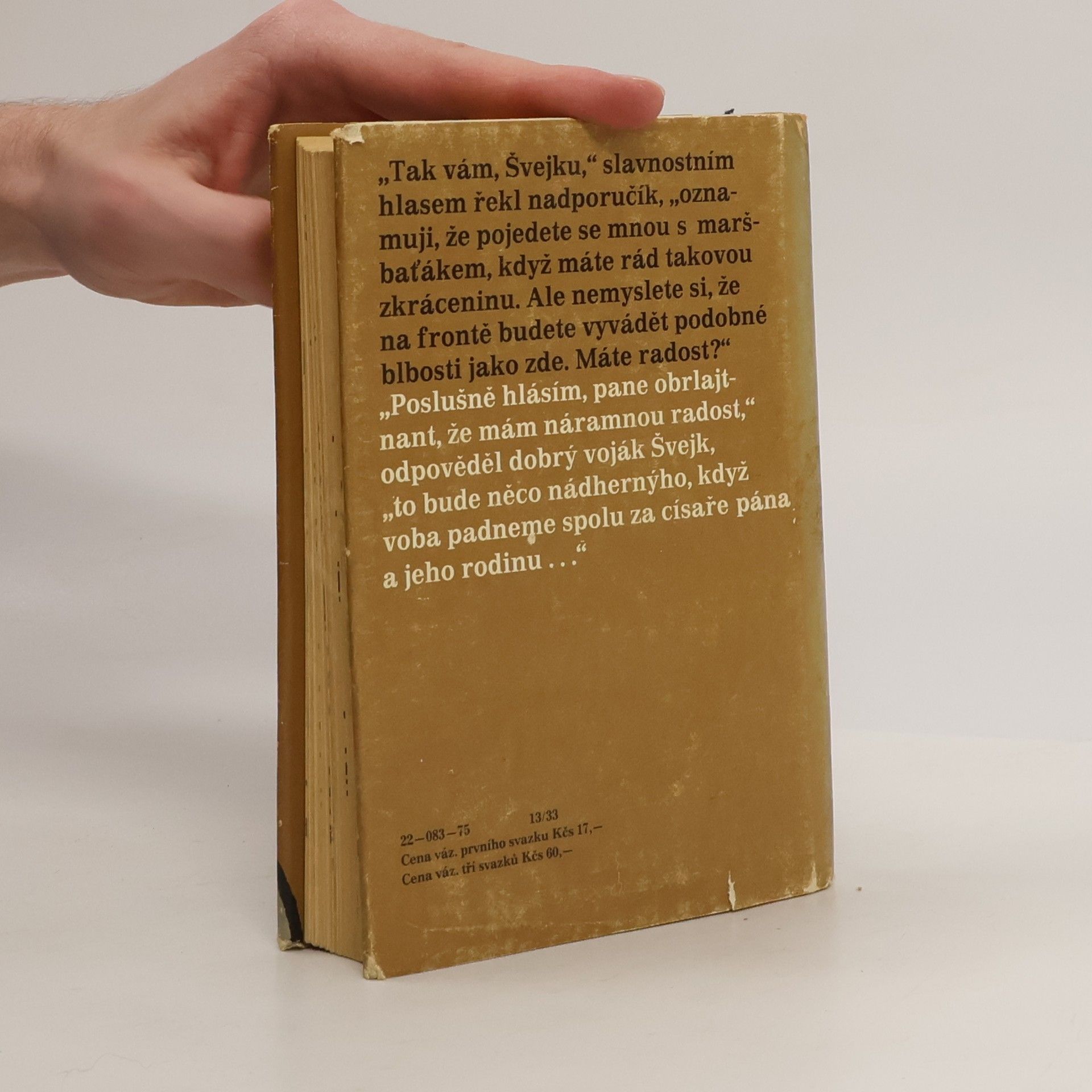Podtitul: V zázemí. První část slavné humoristické knihy Jaroslava Haška. Světově proslulý román klasika českého humoru je satirou na nespravedlivou válku, do níž byly vehnány národy zkorumpované rakousko-uherské monarchie.