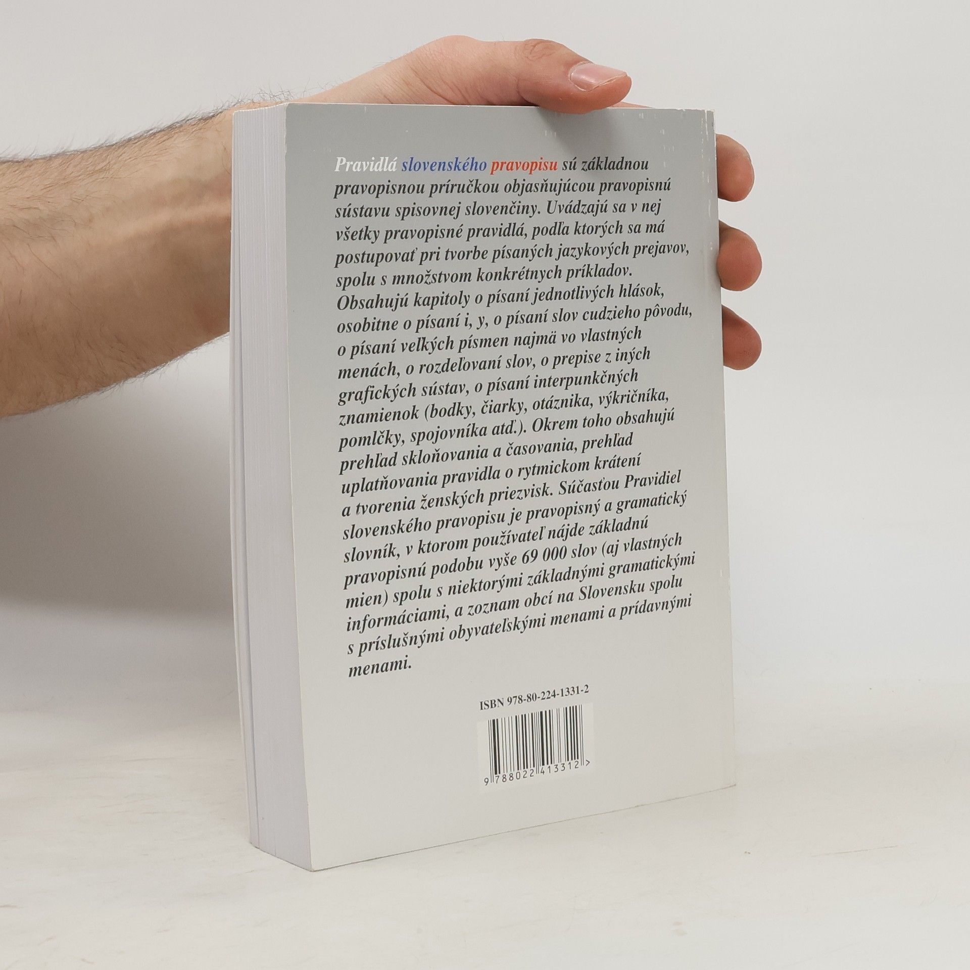 PRAVIDLÁ SLOVENSKÉHO PRAVOPISU sú základnou pravopisnou príručkou každodennej potreby, objasňujúcou pravopisnú sústavu spisovnej slovenčiny. Uvádzajú sa v nej všetky pravopisné pravidlá, podľa ktorých sa má postupovať pri tvorbe písaných jazykových prejavov, spolu s množstvom konkrétnych príkladov. V štvrtom - nezmenenom vydaní PRAVIDIEL SLOVENSKÉHO PRAVOPISU boli odstránené niektoré tlačové chyby vyskytujúce sa v treťom vydaní.