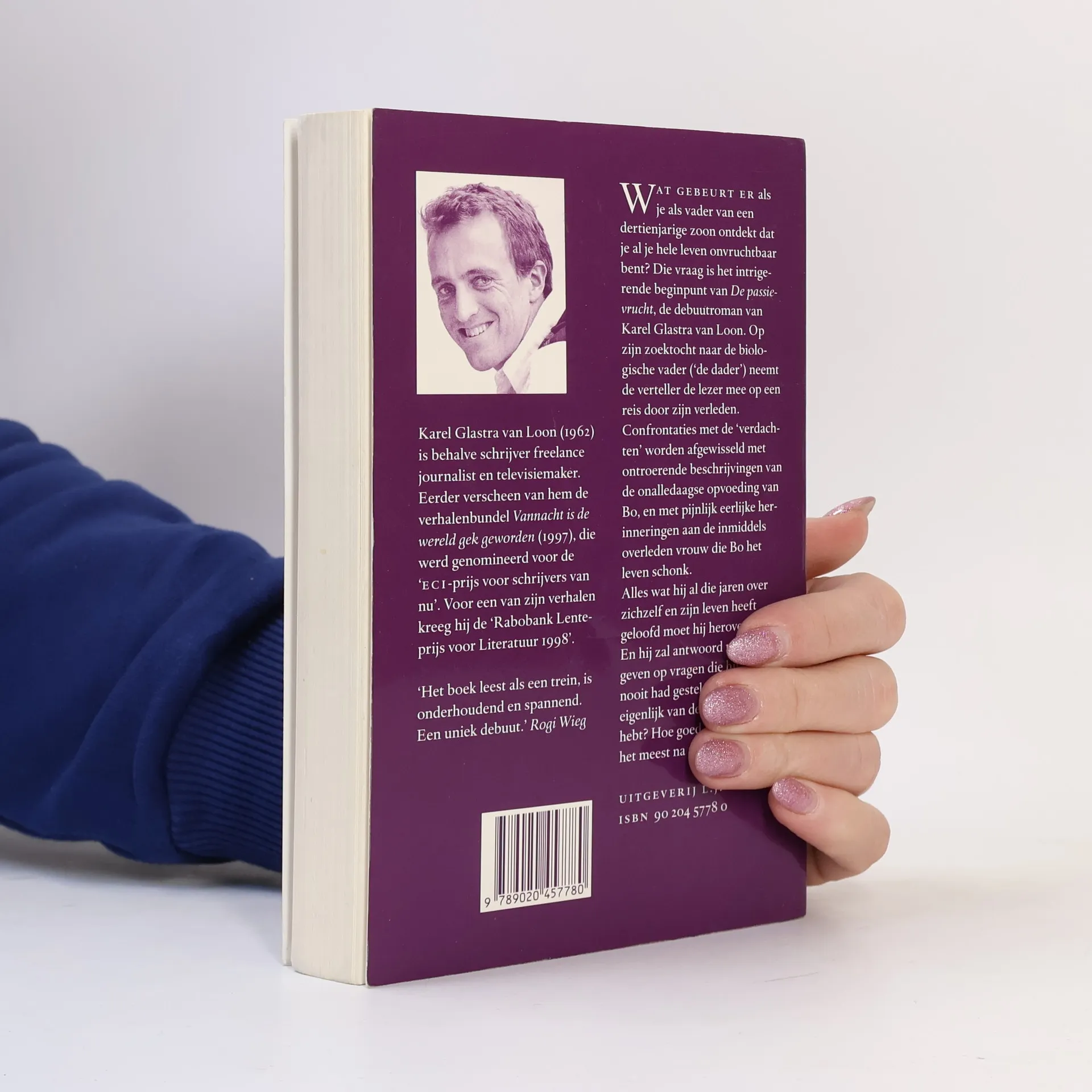 Wat gebeurt er als je als vader van een dertienjarige zoon ontdekt dat je al je hele leven onvruchtbaar bent? Die vraag is het intrigerende beginpunt van De passievrucht, de debuutroman van Karel Glastra van Loon. Op zijn zoektocht naar de biologische vader ('de dader') neemt de verteller de lezer mee op een reis door zijn verleden. Confrontaties met de 'verdachten' worden afgewisseld met ontroerende beschrijvingen van de onalledaagse opvoeding van Bo, en met pijnlijk eerlijke herinneringen aan de inmiddels overleden vrouw die Bo het leven schonk. Alles wat hij al die jaren over zichzelf en zijn leven heeft geloofd moet hij heroverwegen. En hij zal antwoord moeten geven op vragen die hij liever nooit had gesteld. Wat weet je eigenlijk van degenen die je liefhebt? Hoe goed ken je hen die je het meest na zijn?