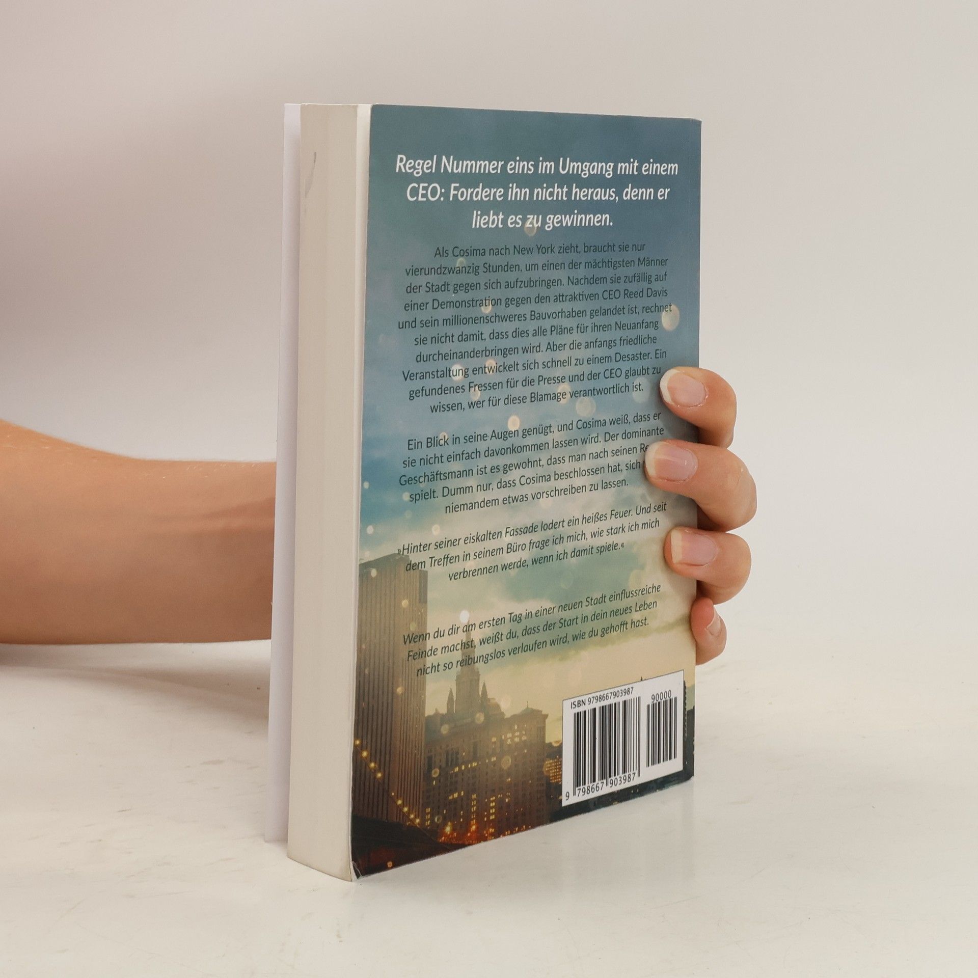 Regel Nummer eins im Umgang mit einem CEO: Fordere ihn nicht heraus, denn er liebt es zu gewinnen. Als Cosima nach New York zieht, braucht sie nur vierundzwanzig Stunden, um einen der mächtigsten Männer der Stadt gegen sich aufzubringen. Nachdem sie zufällig auf einer Demonstration gegen den attraktiven CEO Reed Davis und sein millionenschweres Bauvorhaben gelandet ist, rechnet sie nicht damit, dass dies alle Pläne für ihren Neuanfang durcheinanderbringen wird. Aber die anfangs friedliche Veranstaltung entwickelt sich schnell zu einem Desaster. Ein gefundenes Fressen für die Presse - und der CEO glaubt zu wissen, wer für diese Blamage verantwortlich ist. Ein Blick in seine Augen genügt, und Cosima weiß, dass er sie nicht einfach davonkommen lassen wird. Der dominante Geschäftsmann ist es gewohnt, dass man nach seinen Regeln spielt. Dumm nur, dass Cosima beschlossen hat, sich von niemandem etwas vorschreiben zu lassen. »Hinter seiner eiskalten Fassade lodert ein heißes Feuer. Und seit dem Treffen in seinem Büro frage ich mich, wie stark ich mich verbrennen werde, wenn ich damit spiele.« Wenn du dir am ersten Tag in einer neuen Stadt einflussreiche Feinde machst, weißt du, dass der Start in dein neues Leben nicht so reibungslos verlaufen wird, wie du gehofft hast. Es handelt sich um einen abgeschlossenen Liebesroman mit 350 Taschenbuchseiten und expliziten Szenen.