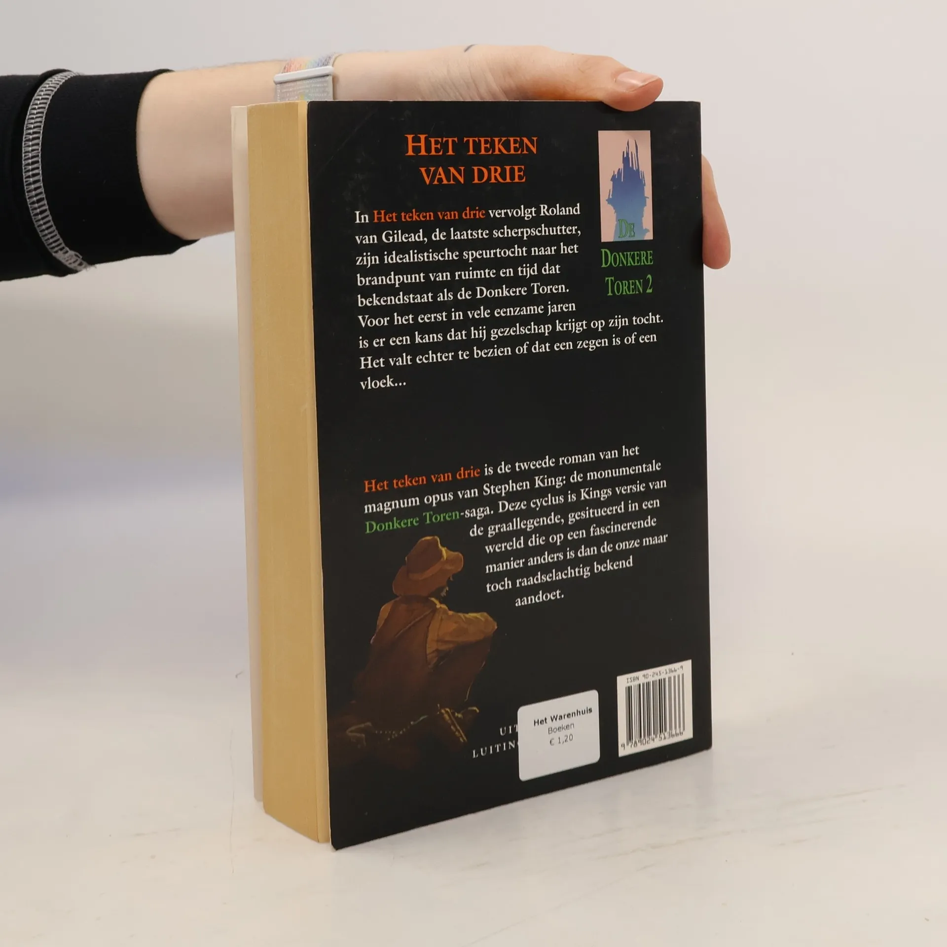 In Het teken van drie vervolgt Roland van Gilead, de laatste scherpschutter, zijn idealistische speurtocht naar het brandpunt van ruimte en tijd dat bekendstaat als de Donkere Toren. Voor het eerst in vele eenzame jaren is er een kans dat hij gezelschap krijgt op zijn tocht. Het valt echter te bezien of dat een zegen is of een vloek... Het teken van drie is de tweede roman van het magnum opus van Stephen King: de monumentale Donkere Toren-saga. Deze cyclus is Kings versie van de graallegende, gesitueerd in een wereld die op een fascinerende manier anders is dan de onze maar toch raadselachtig bekend aandoet.