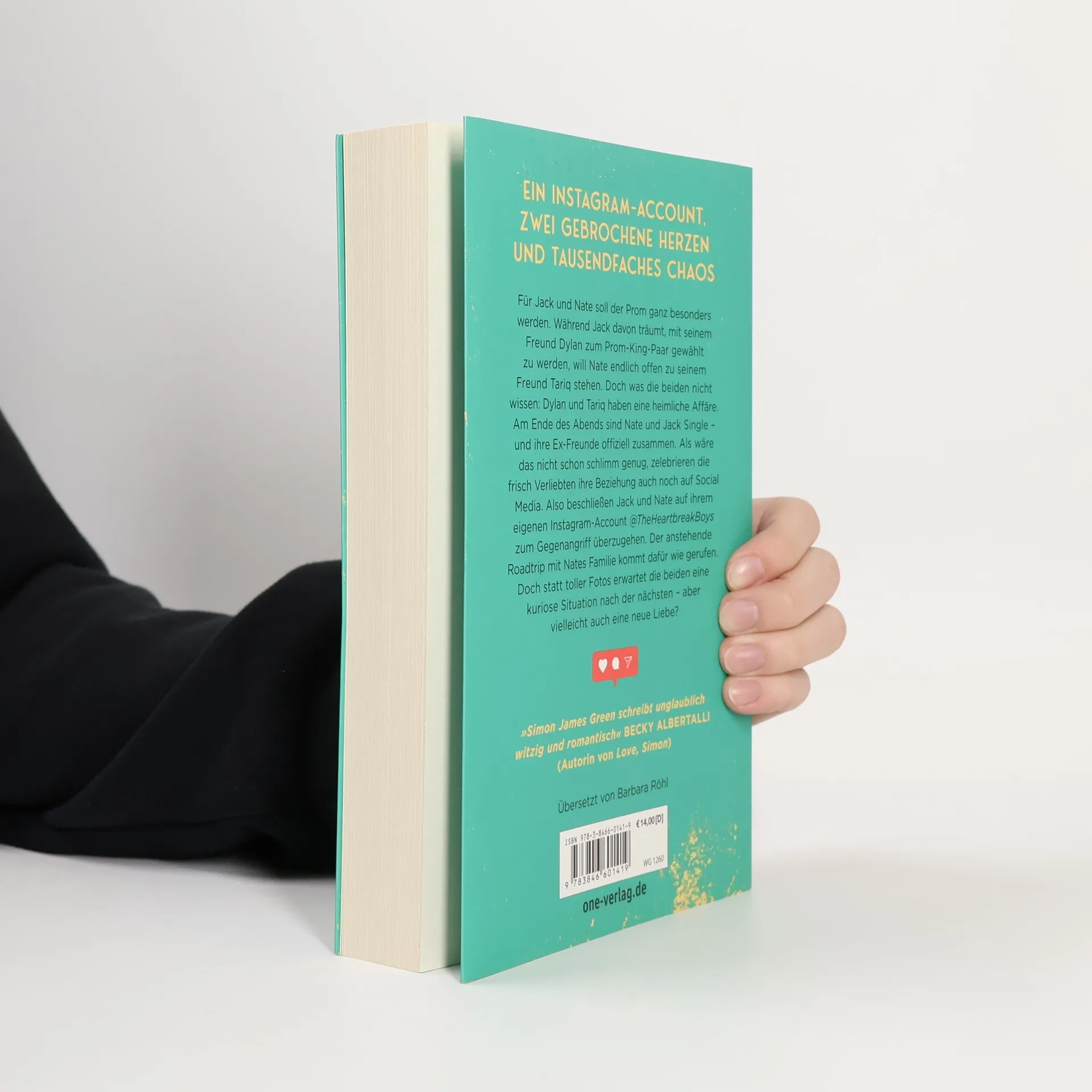 Eine locker-leichte LGBTQIA+ Geschichte über gebrochene Herzen, einen verrückten Roadtrip, Social Media und die große Liebe Für Jack und Nate sollte der Prom ganz besonders werden, doch was die beiden nicht wissen: Ihre festen Freunde haben eine Affäre. Am Ende des Abends sind Nate und Jack Single - und ihre Ex-Freunde offiziell zusammen. Und als wäre das nicht schon schlimm genug, zelebrieren die frisch Verliebten ihre Beziehung auf Instagram. Also beschließen Jack und Nate auf ihrem eigenen Account @TheHeartbreakBoys zum Gegenangriff überzugehen. Dabei schlittern sie von einer kuriosen Situation in die nächste. Ob sie gemeinsam ihren Herzschmerz überwinden können? "Simon James Green ist witzig und romantisch und schreibt mit charmanter Beobachtungsgabe” Becky Albertalli