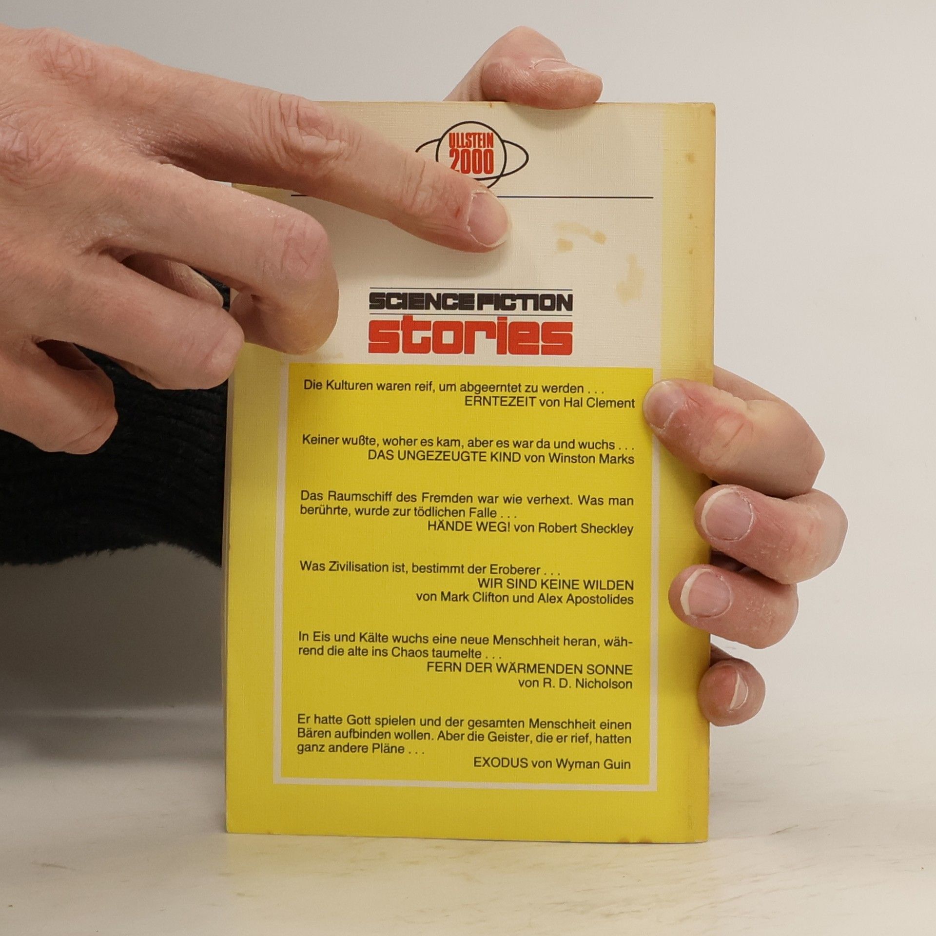 Enthält folgende Stories:Hal Clement: ErntezeitWinston Marks: Das nichtgezeugte KindRobert Sheckley: Hände weg!Mark Clifton & Alex Apostolides: Wir sind keine WildenR. D. Nicholson: Fern der wärmenden SonneWyman Guin: Exodus