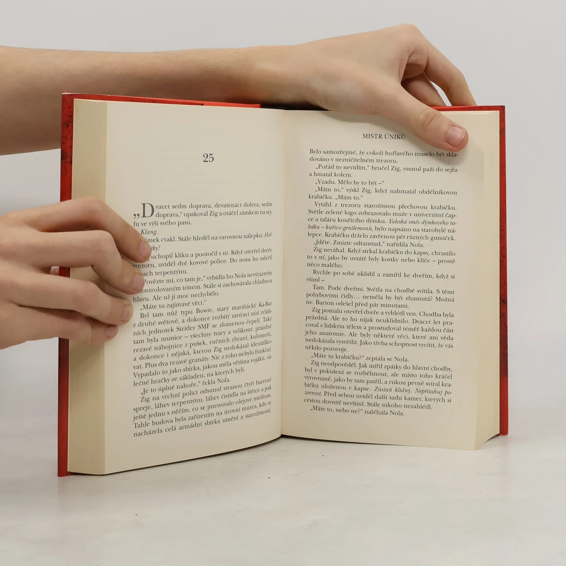 Dvě hodiny jízdy od Washingtonu DC se nachází americká vládní márnice pro případy nejvyššího zájmu a utajení. Nejdůležitější pohřební ústav ve Spojených státech. Aby zde vydržel pracovat, má Jim „Zig“ Zwicharowski jedno pravidlo: nikdy si případy nebrat osobně. Jenže ve chvíli, kdy přivezou nové mrtvé tělo – mladou seržantku Nolu Brownovou, která se v dětství kamarádila s Zigovou dcerou –, si Zig nemůže pomoct. Při bližším ohledání těla okamžitě zjistí, že tohle Nola není. Skutečně – dávná kamarádka jeho dcery je stále naživu. A na útěku. Zig odhaluje eskamotérský kousek rozehraný na nejvyšších mocenských místech – a při svém pátrání se dostává do historie až k slavnému muži jménem Harry Houdini. „Nolo, mělas pravdu. Utíkej.“