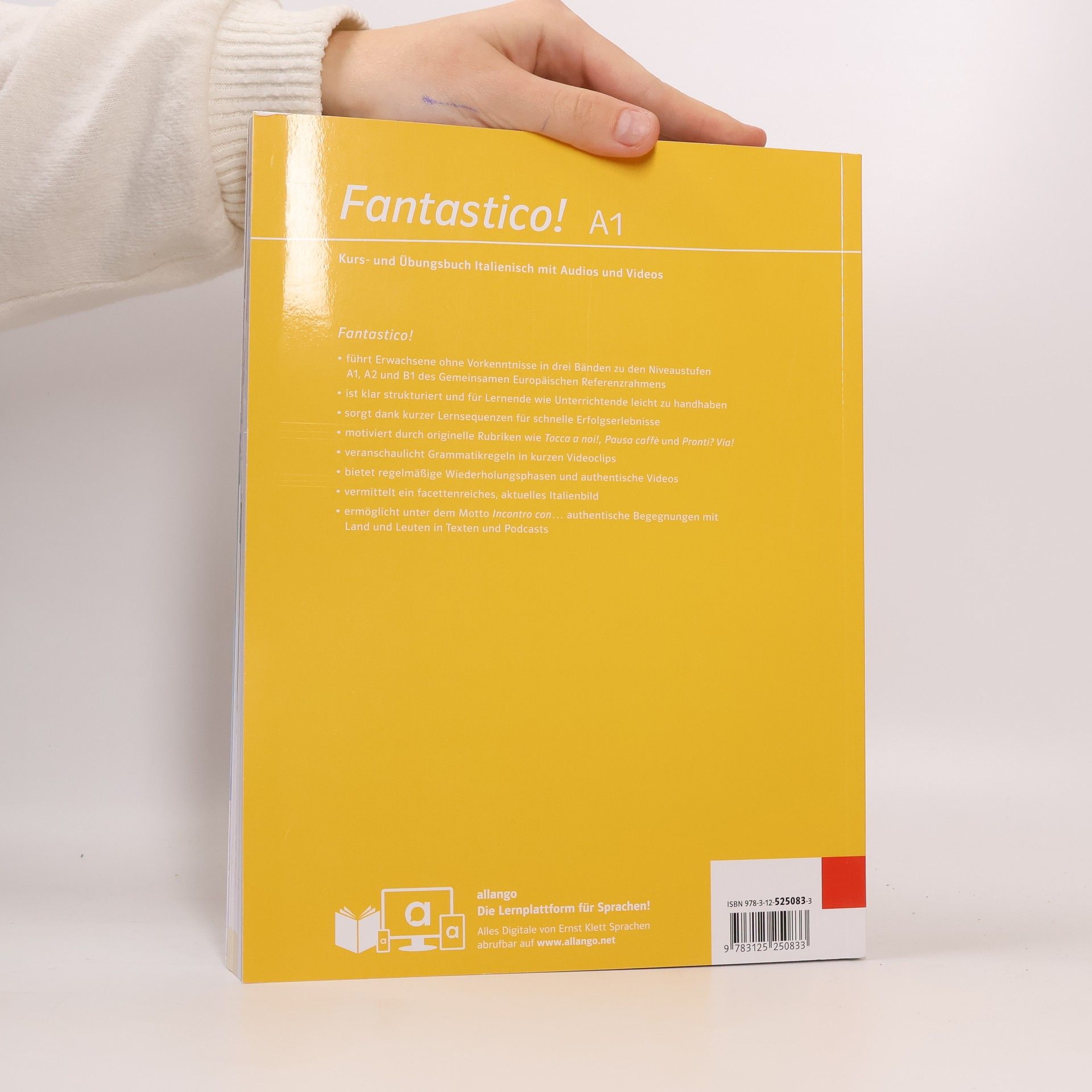 Die Hybride Ausgabe von "Fantastico!" bietet einen Lizenzschlüssel für digitale Inhalte auf der Lernplattform allango. Die drei Bände führen Erwachsene ohne Vorkenntnisse durch die Niveaustufen A1, A2 und B1, mit klarer Struktur, kurzen Lernsequenzen und motivierenden Rubriken. Authentische Begegnungen mit Italien werden durch Texte und Podcasts vermittelt.