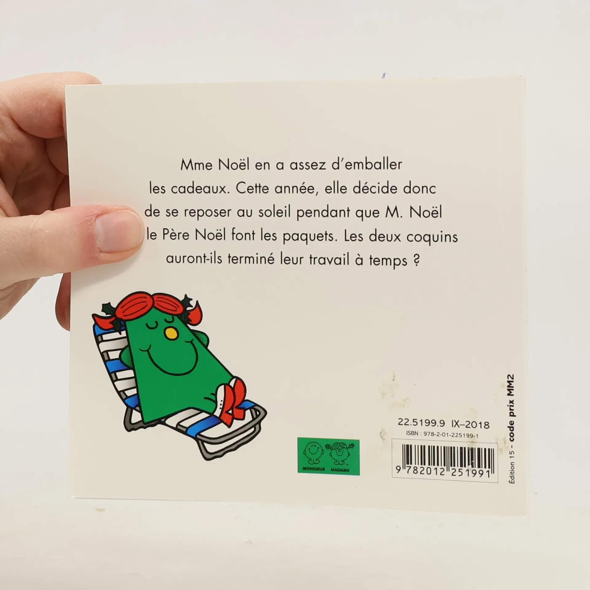 Mme Noël en a assez d'emballer les cadeaux.Cette année, elle décide donc de se reposer au soleil pendant que M. Noël et le Père Noël font les paquets. Les deux coquins auront-ils terminé leur travail à temps ?