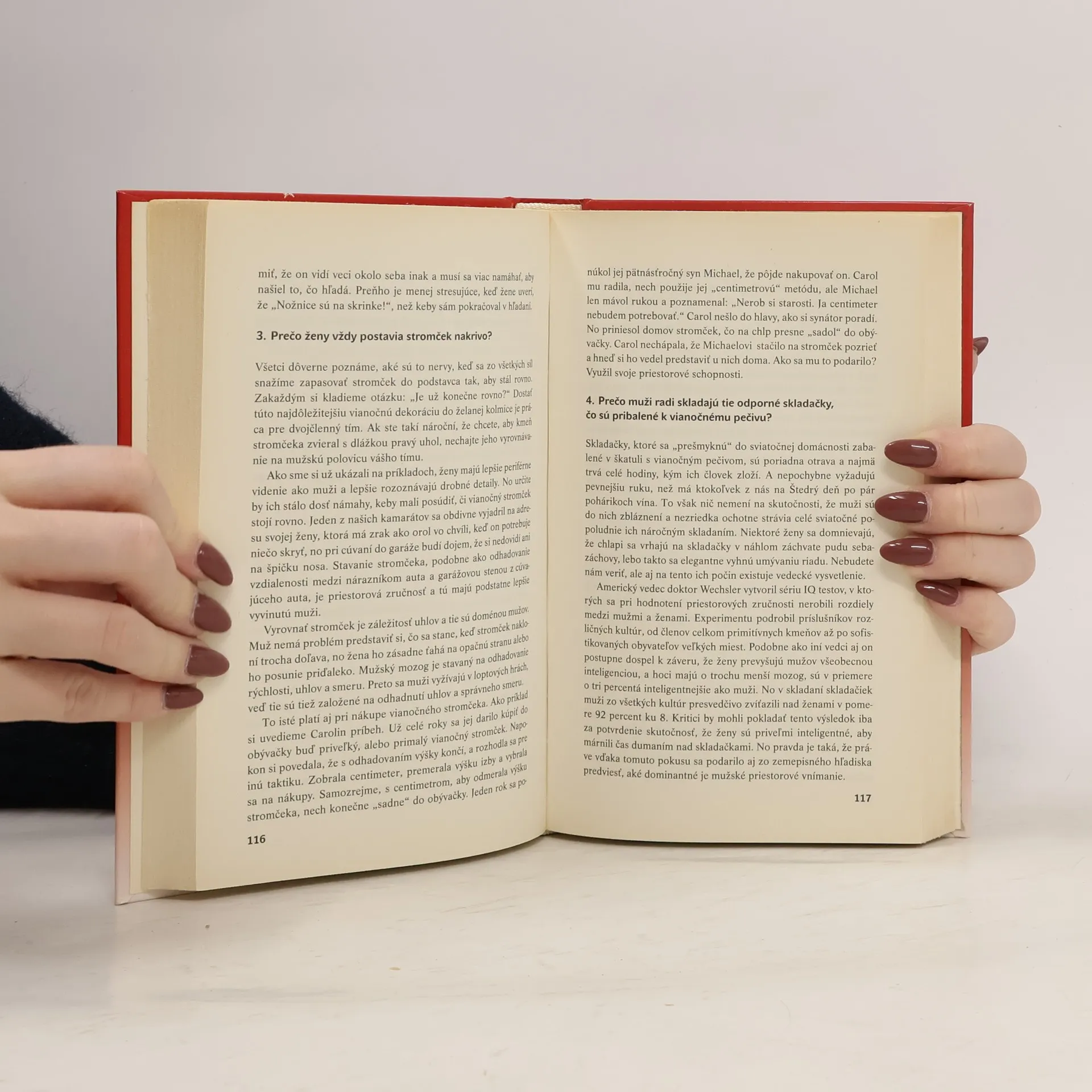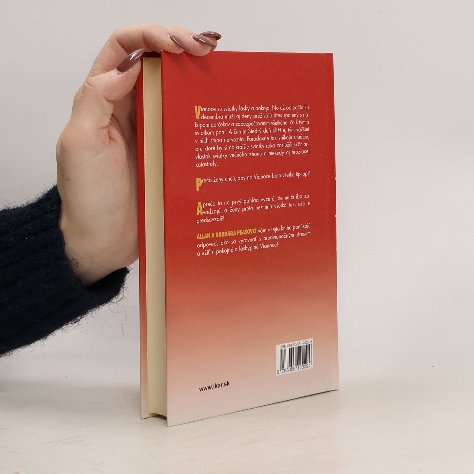 Vianoce sú sviatky lásky a pokoja. No už od začiatku decembra muži aj ženy prežívajú stres spojený s nákupom darčekov a zabezpečením všetkého, čo k týmto sviatkom patrí. A čím je Štedrý deň bližšie, tým väčšmi v nich stúpa nervozita. Paradoxne tak vznikajú situácie, pre ktoré by si najkrajšie sviatky roka zaslúžili skôr prívlastok sviatky večného zhonu a niekedy aj hroziacej katastrofy… Prečo ženy chcú, aby na Vianoce bolo všetko tip-top? A prečo to na prvý pohľad vyzerá, že muži iba zavadzajú, a ženy kvôli nim nestihnú všetko tak, ako si predsavzali? Allan a Barbara Peasovci vám v tejto knihe ponúkajú odpoveď, ako sa vyrovnať s predvianočným stresom a užiť si pokojné a láskyplné Vianoce!