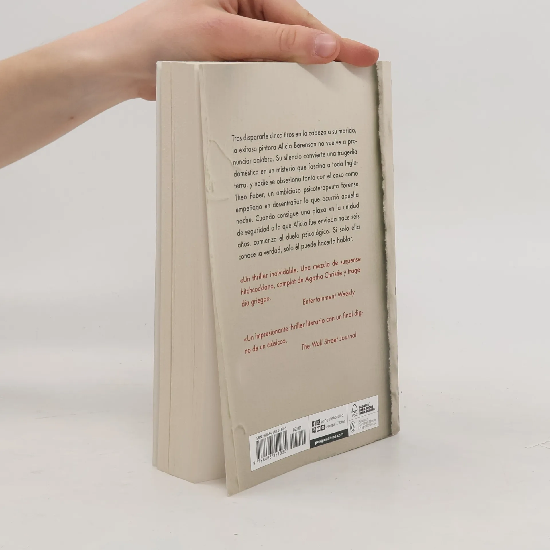 Alicia Berenson, una pintora de éxito, dispara cinco tiros en la cabeza de su marido, y no vuelve a hablar nunca más. Su negativa a emitir palabra alguna convierte una tragedia doméstica en un misterio que atrapa la imaginación de toda Inglaterra. Theo Faber, un ambicioso psicoterapeuta forense obsesionado con el caso, está empeñado en desentrañar el misterio de lo que ocurrió aquella noche fatal y consigue una plaza en The Grove, la unidad de seguridad en el norte de Londres a la que Alicia fue enviada hace seis años y en la que sigue obstinada en su silencio. Pronto descubre que el mutismo de la paciente está mucho más enraizado de lo que pensaba. Pero, si al final hablara, ¿estaría dispuesto a escuchar la verdad?..