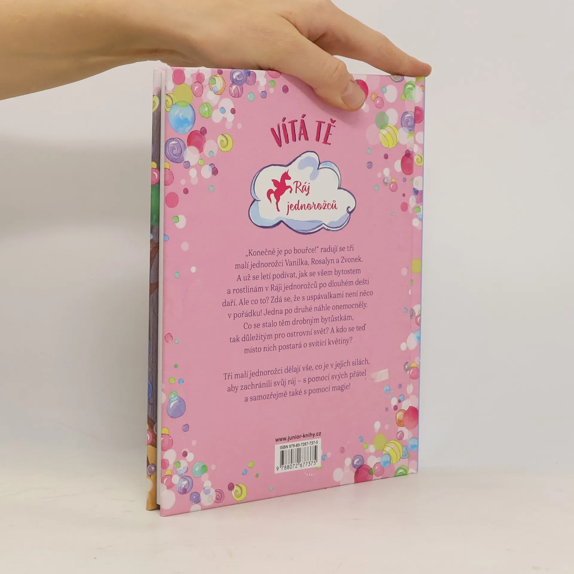 Jednorožci Vanilka, Rosalyn a Zvonek se letí podívat, jak se všem bytostem a rostlinám v Ráji jednorožců po dlouhém dešti daří. Ale co to? Zdá se, že s uspávalkami není něco v pořádku! Jedna po druhé náhle onemocněly. Co se stalo těm drobným bytůstkám, tak důležitým pro ostrovní svět? A kdo se teď místo nich postará o svítící květiny? Tři malí jednorožci dělají vše, co je v jejich silách, aby zachránili svůj ráj, s pomocí svých přátel a samozřejmě také s pomocí magie.Série: Ráj jednorožců 2