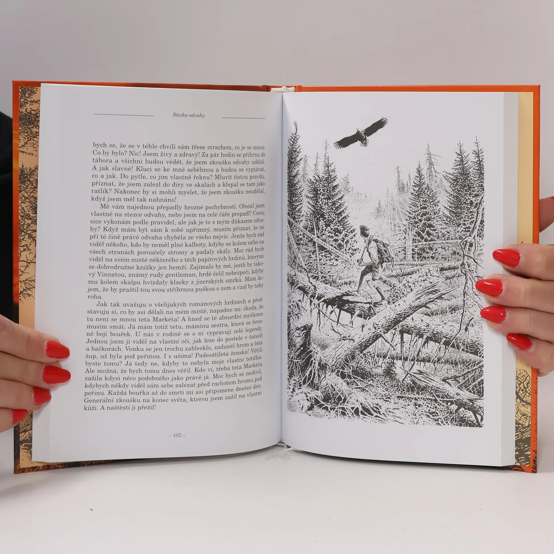 Hrdinou románu je šestnáctiletý chlapec Ježek, který se na letním táboře právě chystá k velké zkoušce. Podle pravidel zvláštní táborové hry nazvané Stezka odvahy má prožít noc a den zcela sám v horách a prokázat tak svou samostatnost, odvahu i zdatnost. Kromě několika nezbytných věcí dostane na cestu i mapu s přesně vyznačenými místy, jimiž musí projít. Nikdo v této chvíli netuší, že se táborová hra změní ve skutečnou zkoušku odvahy. Stezka odvahy zaujme každého čtenáře.
